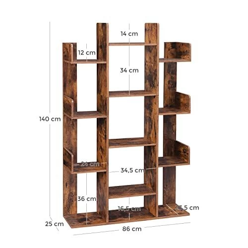 Bibliothèque En Forme D’arbre : 13 étagères, 86x25x140cm, Brun Rustique