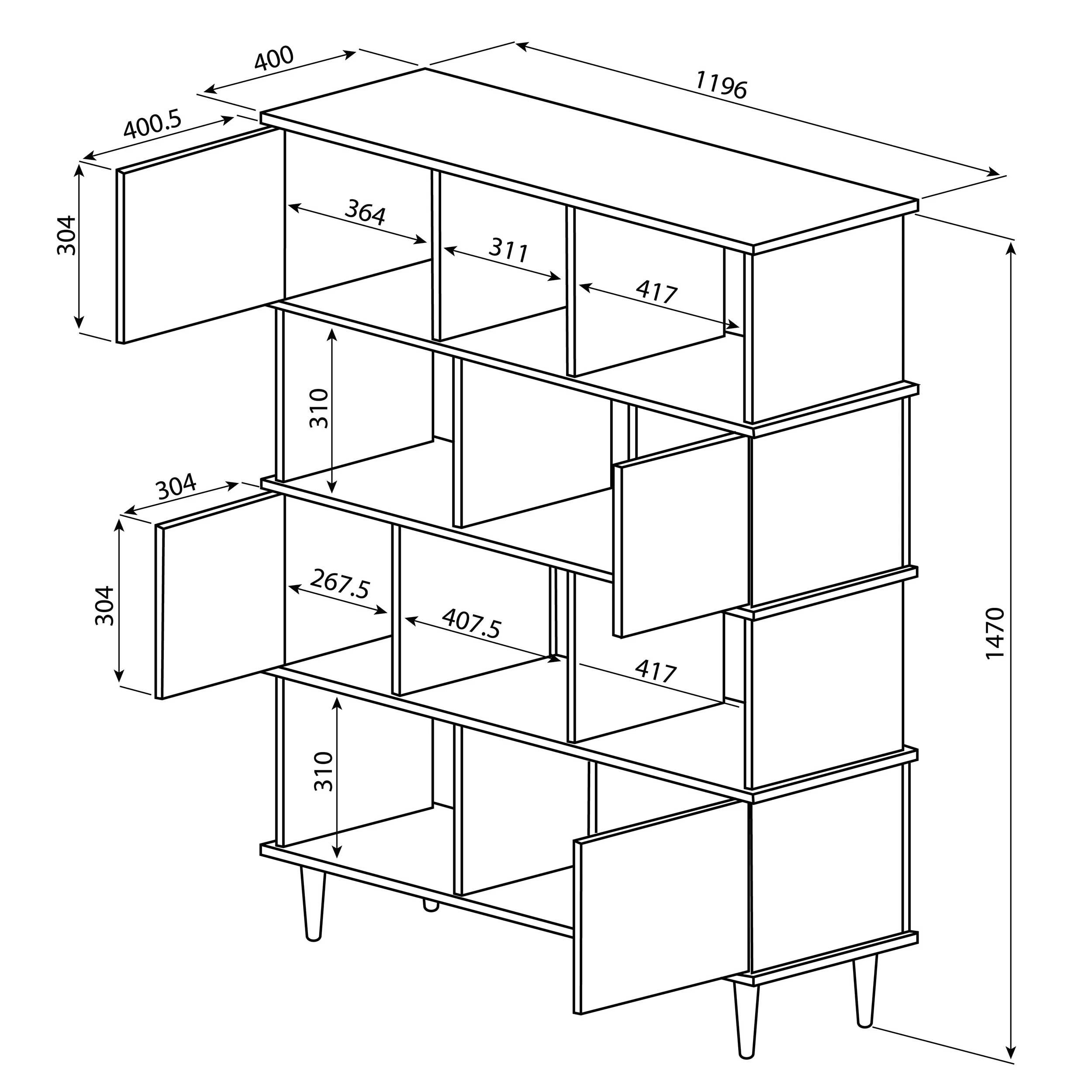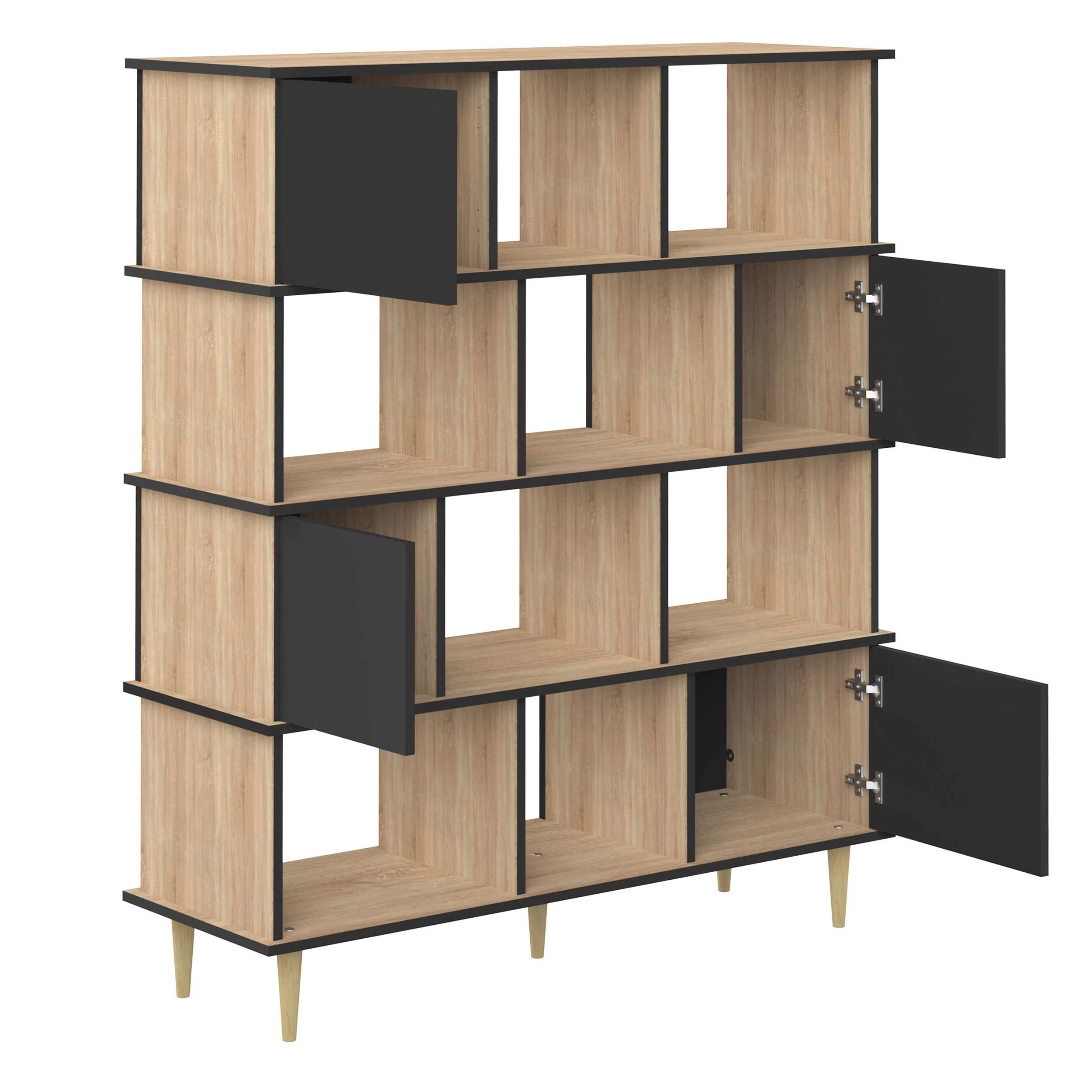 Bibliothèque Nosk 120cm à 4 Portes – Noir/chêne