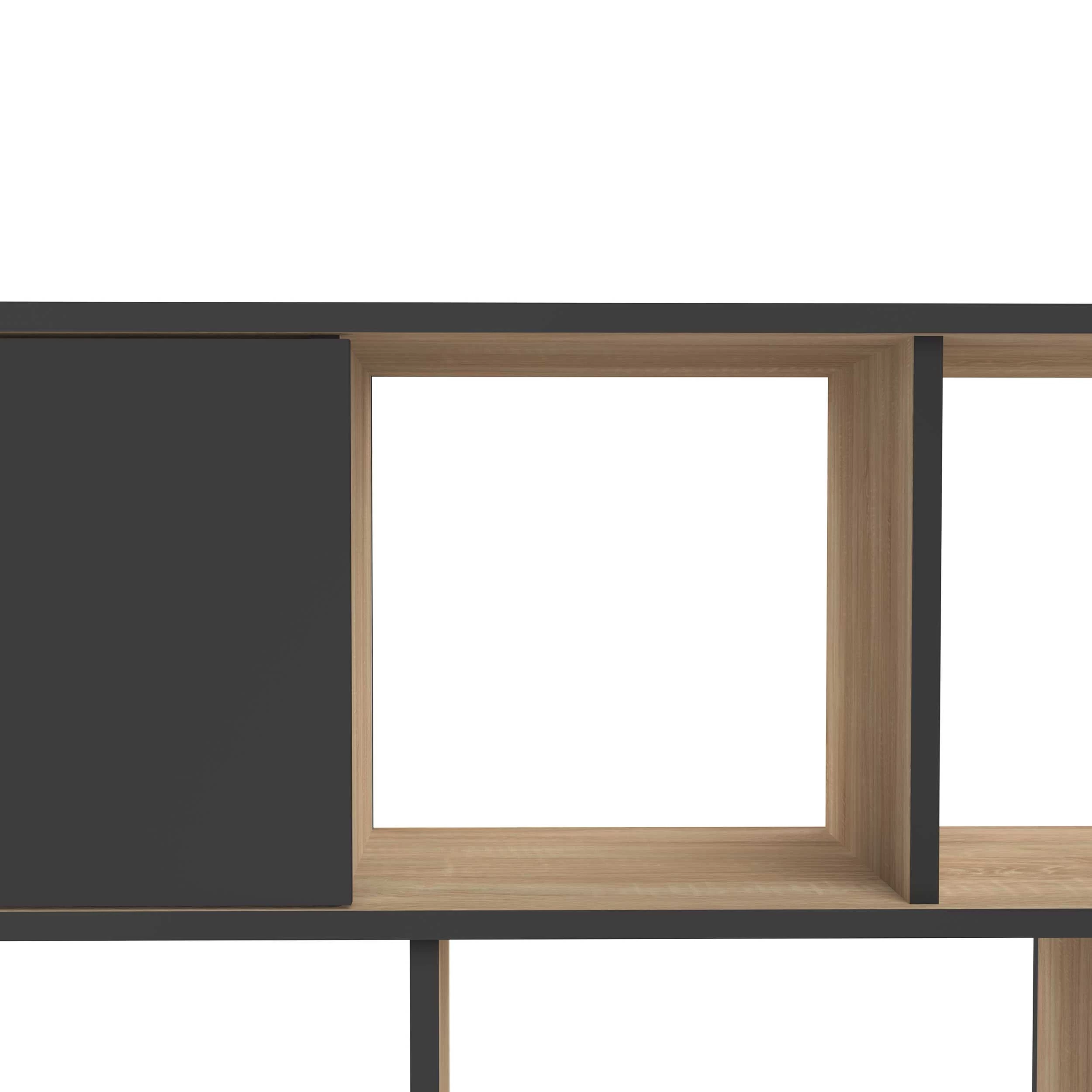 Cette bibliothèque minimaliste Nosk est un atout moderne pour votre bureau ou votre salon. Cette bibliothèque combine le meilleur des deux mondes, puisque vous disposez de huit compartiments ouverts en plus des quatre compartiments fermés avec une porte tournante. De cette façon, vous pouvez non seulement accueillir vos livres et disques préférés, mais aussi vos décorations. Ce meuble d’allure scandinave est fabriqué à partir de panneaux de particules et recouvert d’une couche de mélamine.
