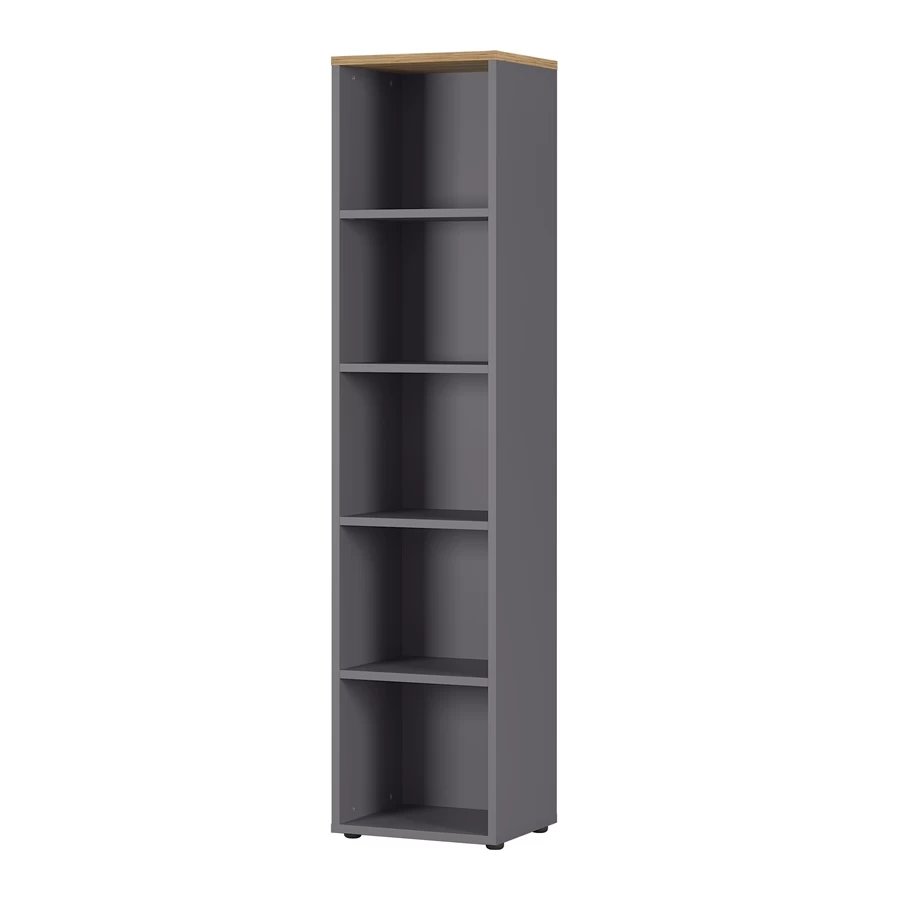 Cette bibliothèque étroite Osmond en gris graphite compte 5 compartiments ouverts. Les 4 étagères sont réglables en hauteur. Introduisez cette bibliothèque dans votre bureau, le séjour ou la chambre d’enfant et rangez-y tous vos livres et documents.