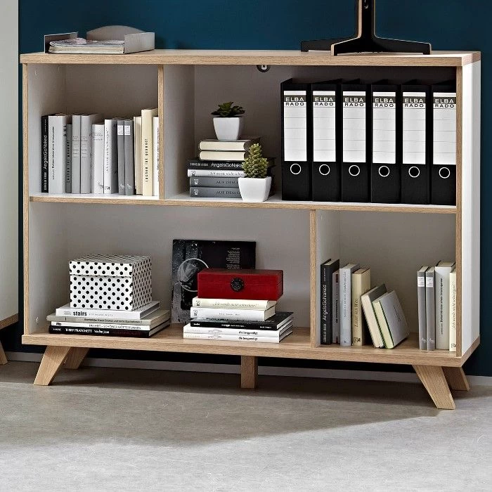 La série Ousmane blanche de Germania en aggloméré laminé aux accents décoratifs de chêne attire tous les regards sur elle. L’aspect naturel des meubles dans un style scandinave moderne est indéniable. Ce bahut fonctionnel peut servir d’accroche-regard dans votre salon ou votre chambre à coucher. La combinaison des pieds en bois massif caractéristiques avec les côtés en MDF mat et thermoformé est un véritable succès. Le meuble est composé de quatre espaces de rangement de différentes tailles.