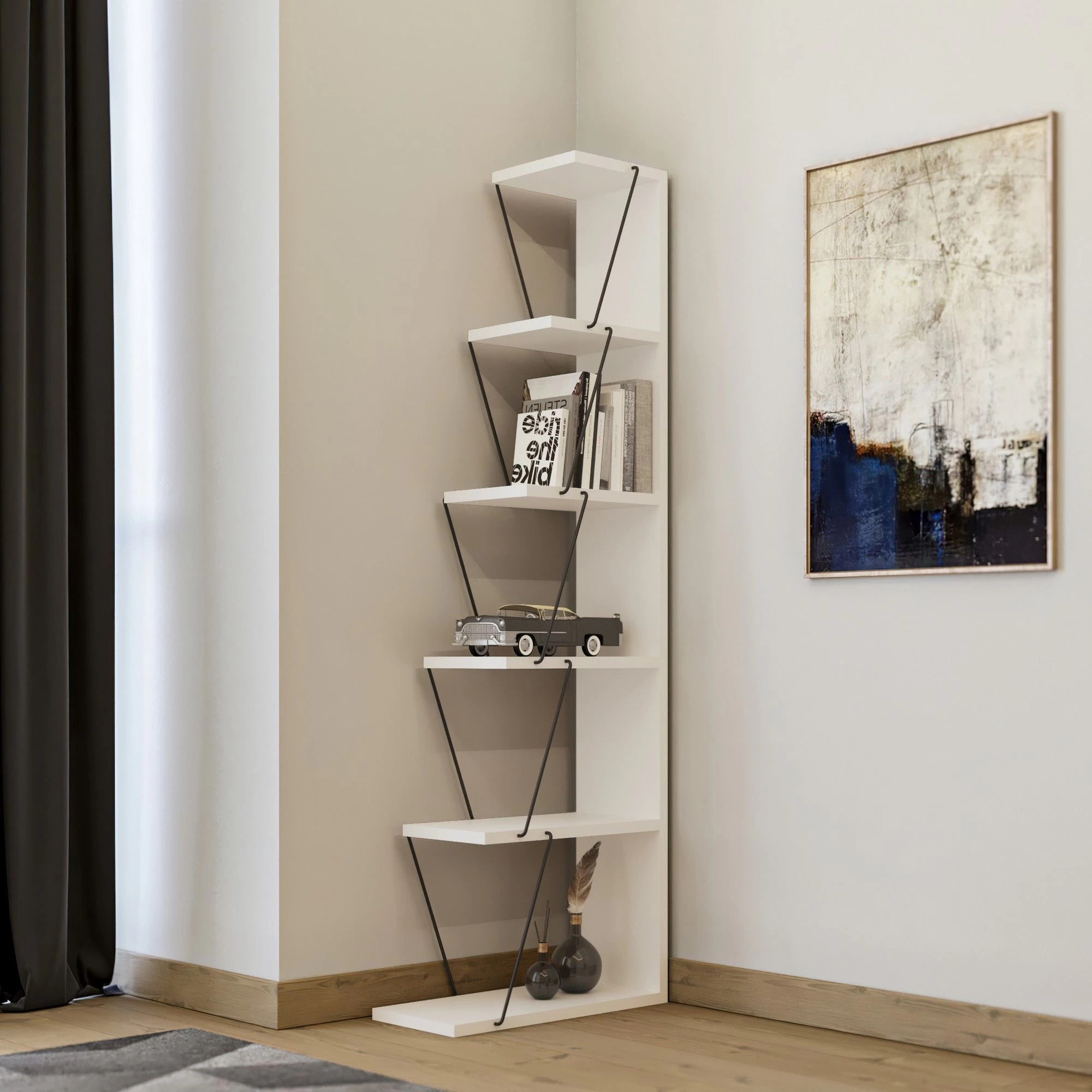 De plus, l’étagère est proposée dans une combinaison classique de blanc et de noir. Cette palette de couleurs intemporelles ajoute une touche de sophistication et d’élégance à tout décor intérieur. Que votre style d’intérieur soit minimaliste, contemporain ou traditionnel, la combinaison de couleurs blanc et noir s’intègre parfaitement, ce qui en fait un ajout polyvalent à n’importe quel espace.
