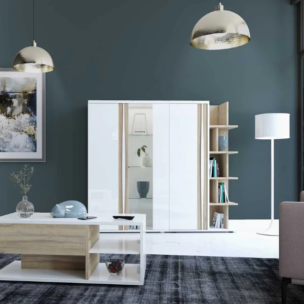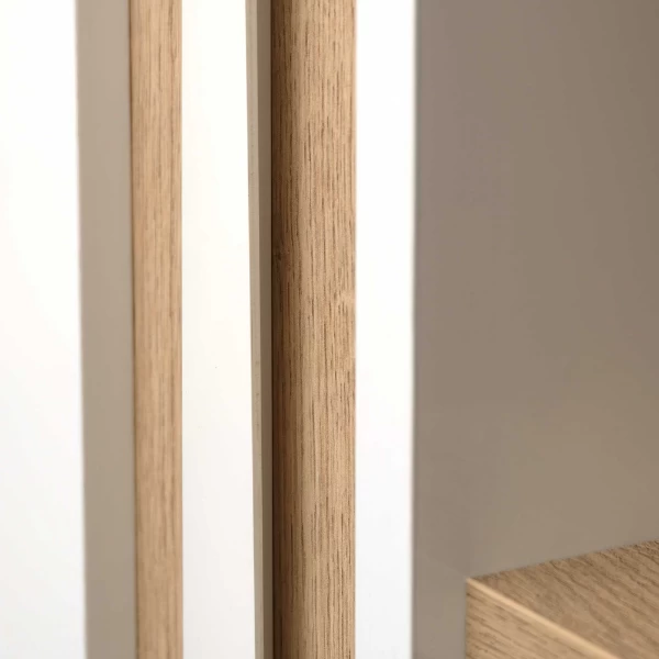 La collection Tannee combine une palette de couleurs claires avec un design épuré et moderne. Les éléments de décor en chêne et la finition blanche brillante font que ce meuble s’intègre aussi bien dans les intérieurs scandinaves que modernes. Cette bibliothèque en aggloméré se compose de deux parties. Derrière la porte se trouvent trois étagères où vous pouvez ranger toutes sortes de choses. En outre, le meuble comporte plusieurs compartiments de rangement ouverts pour votre collection de livres ou vos objets décoratifs. La poignée frappante confère à la collection une personnalité supplémentaire. Parcourez les autres produits de la gamme Tannee.