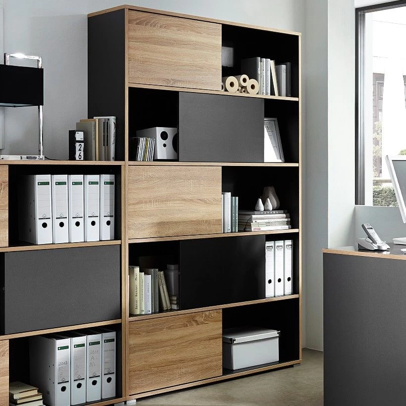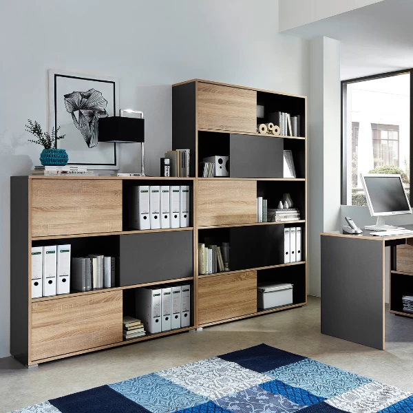 La gamme Tyson est idéale pour ceux qui ont besoin de changer de décor de temps en temps. Cette merveille de rangement est la combinaison parfaite de créativité, de design et de fonctionnalité. L’armoire possède 4 étagères munies de quatre portes coulissantes. Ce qui est bien avec les portes coulissantes, c’est qu’elles sont finies en décor chêne d’un côté et en anthracite de l’autre. Vous pouvez donc choisir quel côté vous voulez utiliser à l’extérieur, ce qui peut donner un effet ludique comme le montrent les photos.