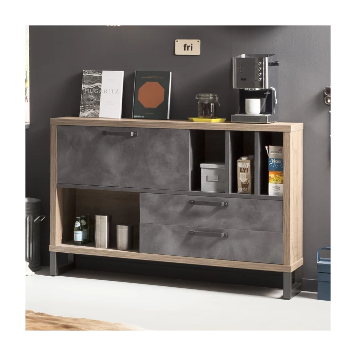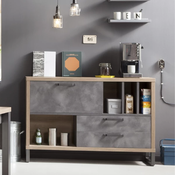 Buffet Faber 140cm Avec Porte Abattante Et Deux Tiroirs – Décor Chêne/aspect Béton