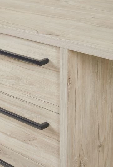 Les meubles de chambre à coucher de la collection Angie ont un design très simpliste. Les meubles sont inspirés du style moderne et sont fabriqués en aggloméré avec une finition décorative en chêne.