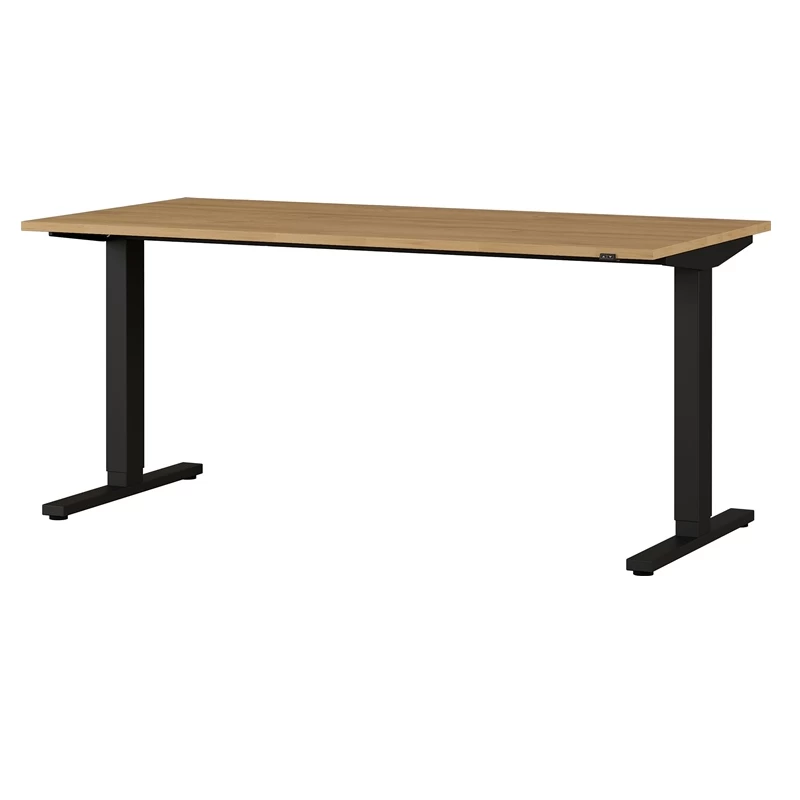 Transformez votre bureau en un lieu de travail ergonomique en y introduisant ce bureau assis-debout de la collection Osmond. Ce bureau se compose d’un large plateau de 160×80 cm et de 2 pieds en T qui sont réglables en hauteur électriquement de 72 cm à 120 cm. Les pieds noirs sont réalisés en acier avec revêtement par poudre.