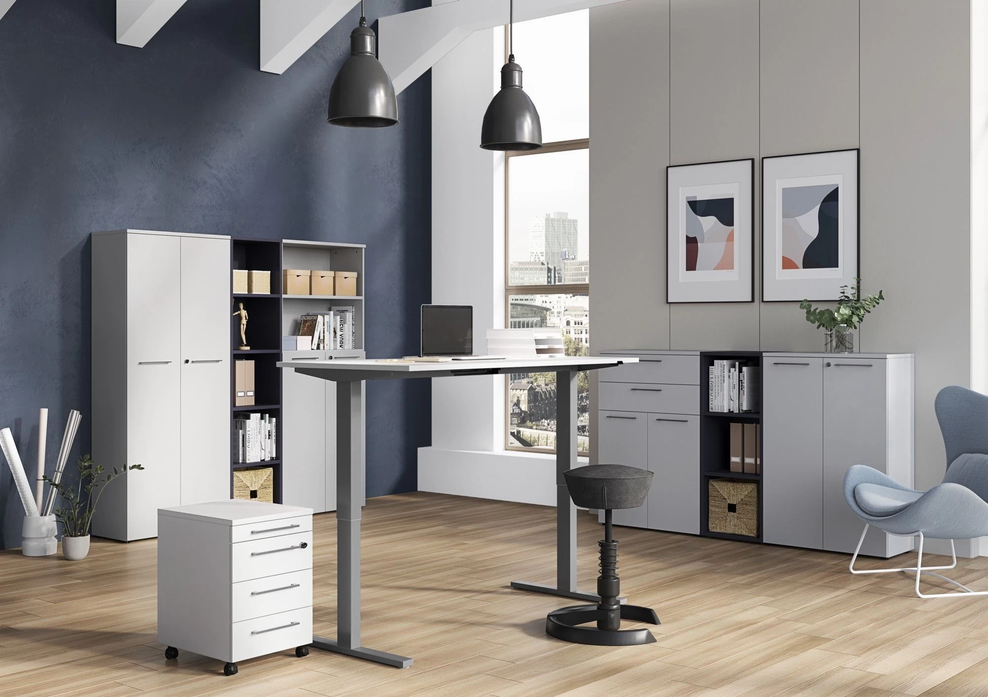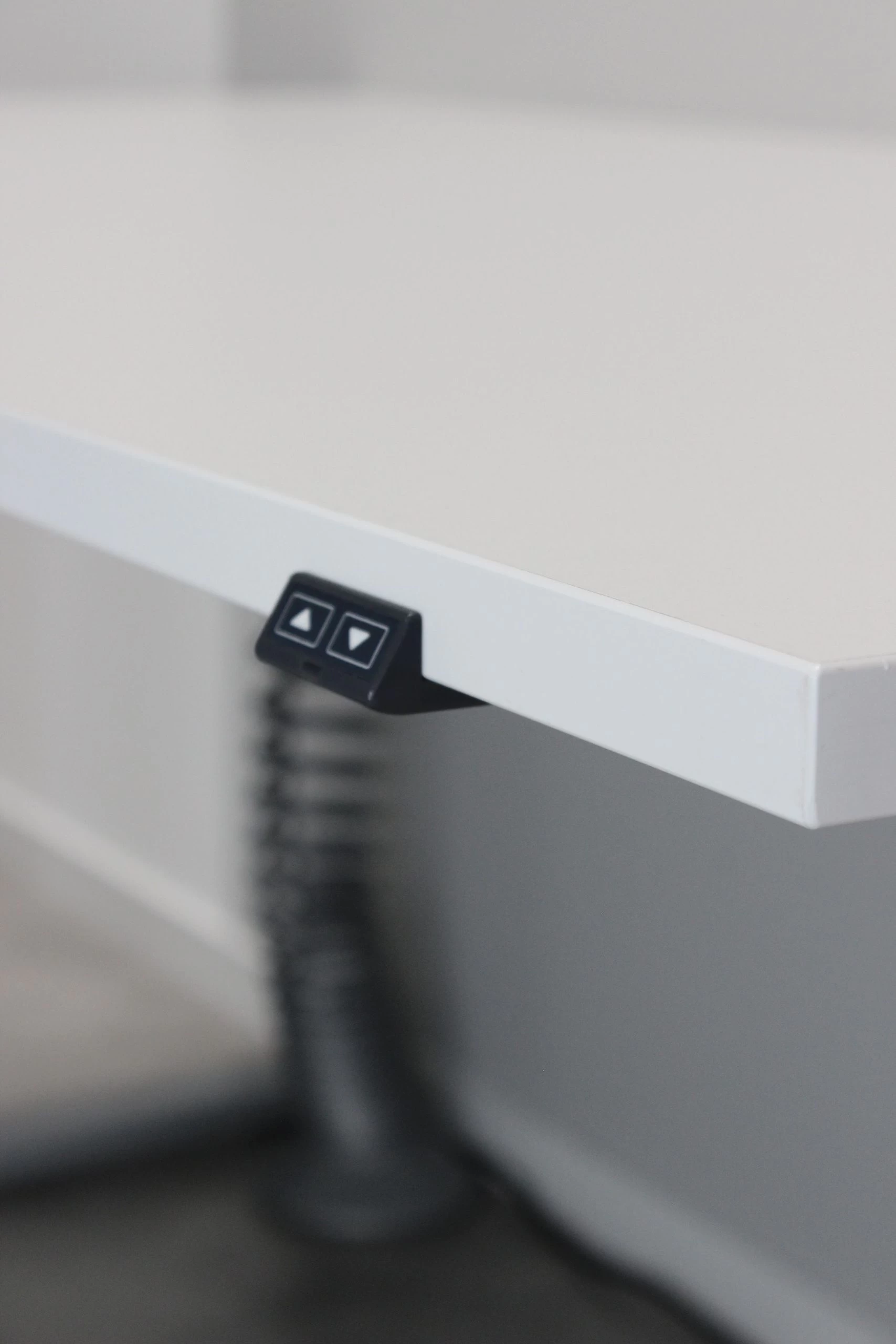 Le poids supporté par le plateau gris clair est de 80 kg. Grâce aux 2 moteurs silencieux (< 50 dB), vous pouvez régler la hauteur du plateau à une vitesse de 38 mm/sec. Le verrou de sécurité garantit que les moteurs s’arrêtent automatiquement après 2 minutes. Le bureau Osmond est également équipé d’une fonction de mémoire qui permet de sauvegarder 2 hauteurs différentes.