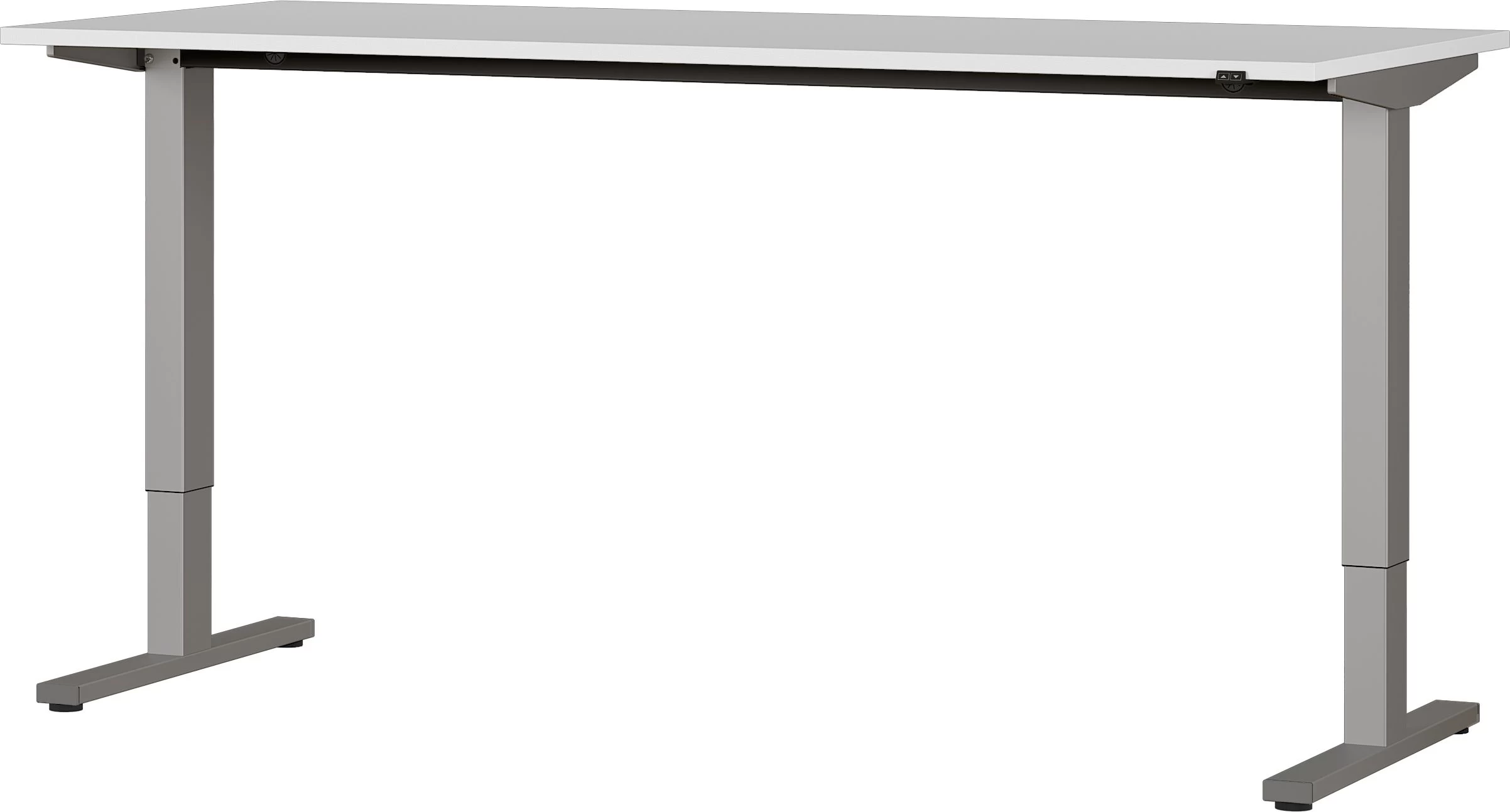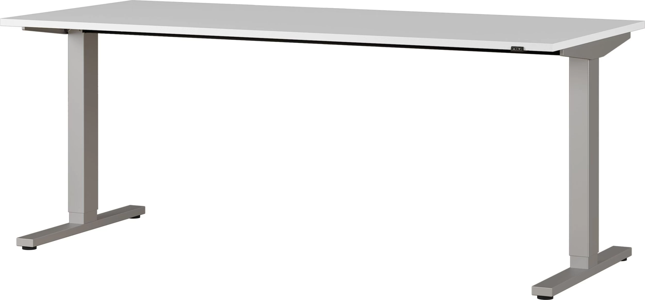 Transformez votre bureau en un lieu de travail ergonomique en y introduisant ce bureau assis-debout de la collection Osmond. Ce bureau se compose d’un large plateau de 180×80 cm et de 2 pieds en T qui sont réglables en hauteur électriquement de 72 cm à 120 cm. Les pieds de couleur argent sont réalisés en acier avec revêtement par poudre.