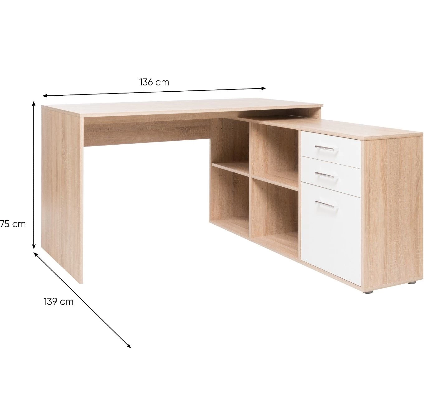 Bureau D’angle Lanzini 2 Tiroirs & 1 Porte – Chêne Sonoma/blanc