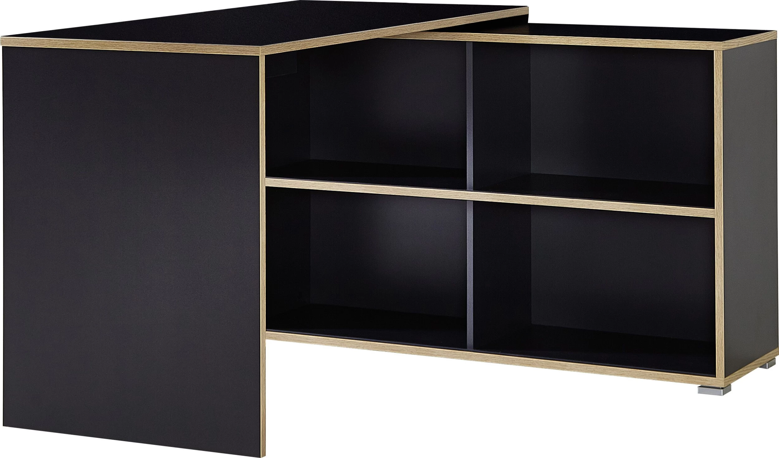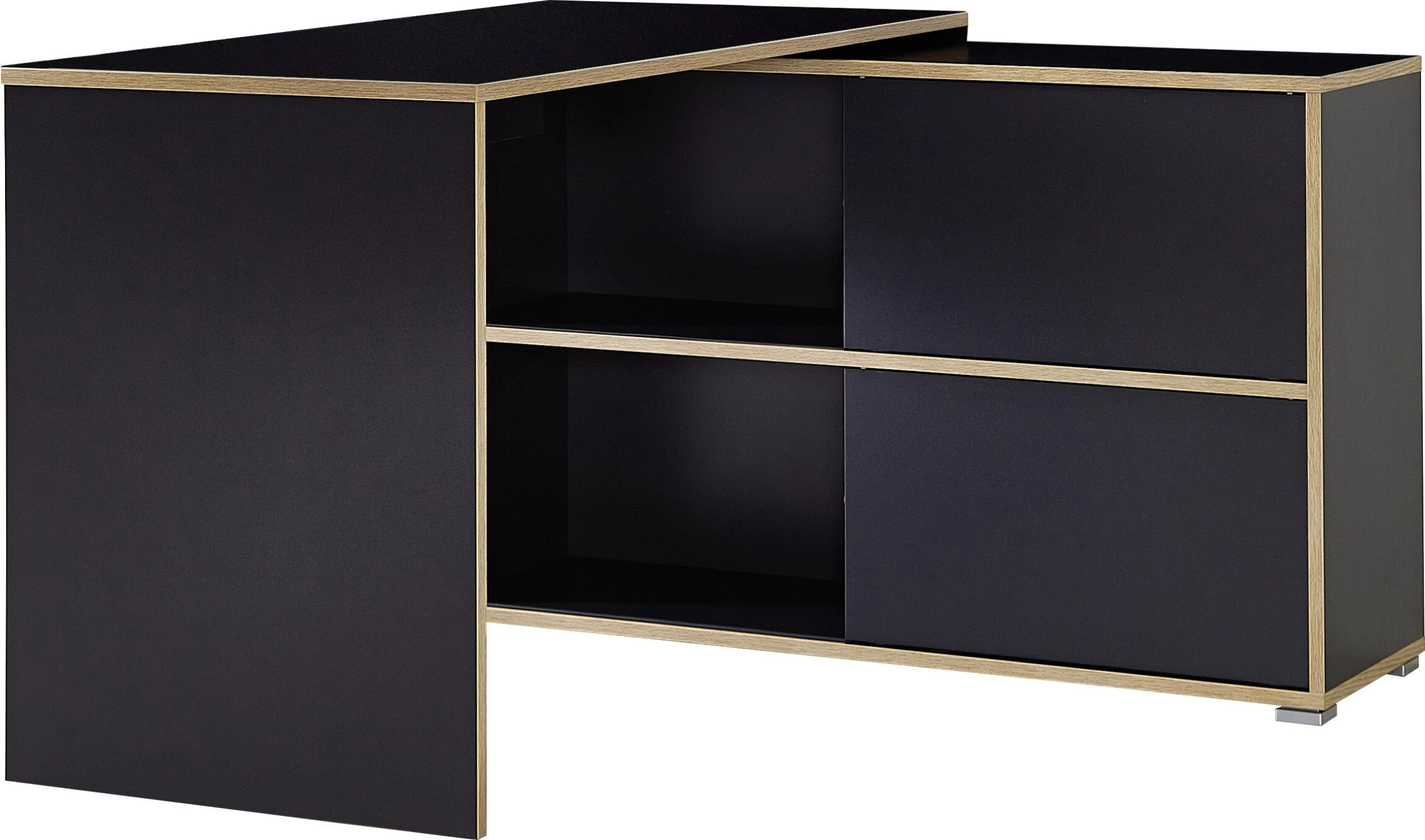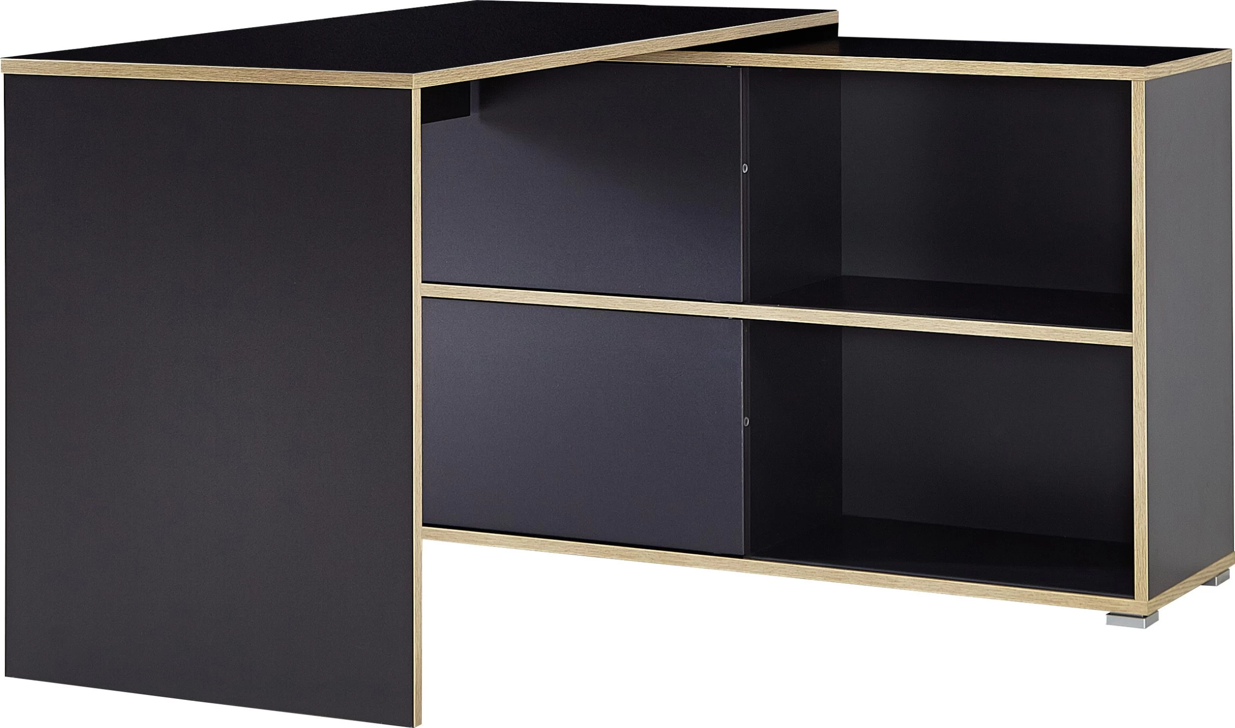 Les portes coulissantes peuvent donc être déplacées à tout moment, de sorte que vous avez toujours deux compartiments ouverts et deux compartiment fermés. Un atout supplémentaire: la section de rangement peut être installée sur les deux côtés du plan de travail. Le plateau du bureau lui-même est spacieux, puisque la surface de travail est de 120 cm de large et de 60 cm de profondeur. Les bords en ABS de haute qualité et la surface en bois de contact complètent le mobilier en aggloméré laminé ! Découvrez les autres couleurs et produits de la collection Tyson sur notre site web !