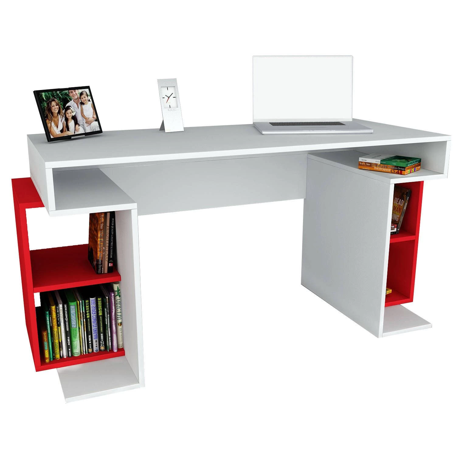 Le bureau d’étude Wooden Art est disponible dans une élégante combinaison de couleurs blanche et rouge, ajoutant une touche vibrante à n’importe quelle pièce. La couleur blanche offre une esthétique propre et moderne, tandis que les accents rouges apportent une touche de couleur et de personnalité à votre espace. Ce bureau s’intègre facilement à différents styles d’intérieur, du minimaliste à l’éclectique, ce qui en fait un choix polyvalent et intemporel pour la décoration de n’importe quelle pièce.