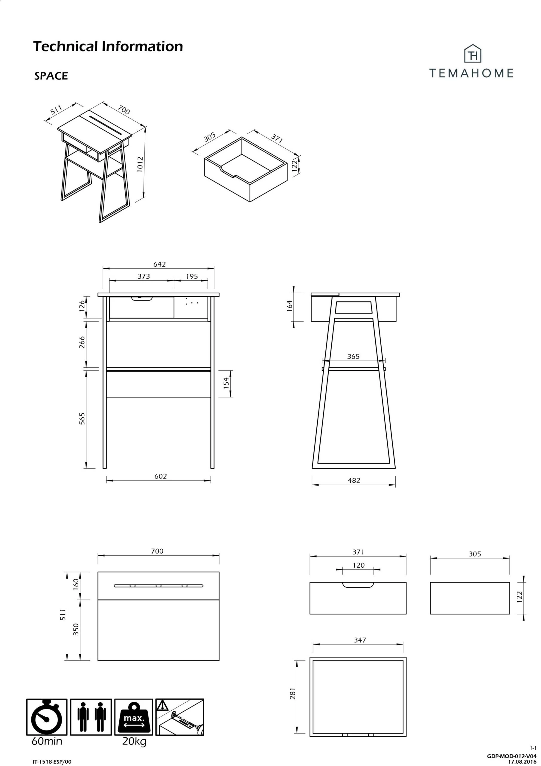 Space sont réalisés en métal. Le plateau est fait en aggloméré et MDF avec une