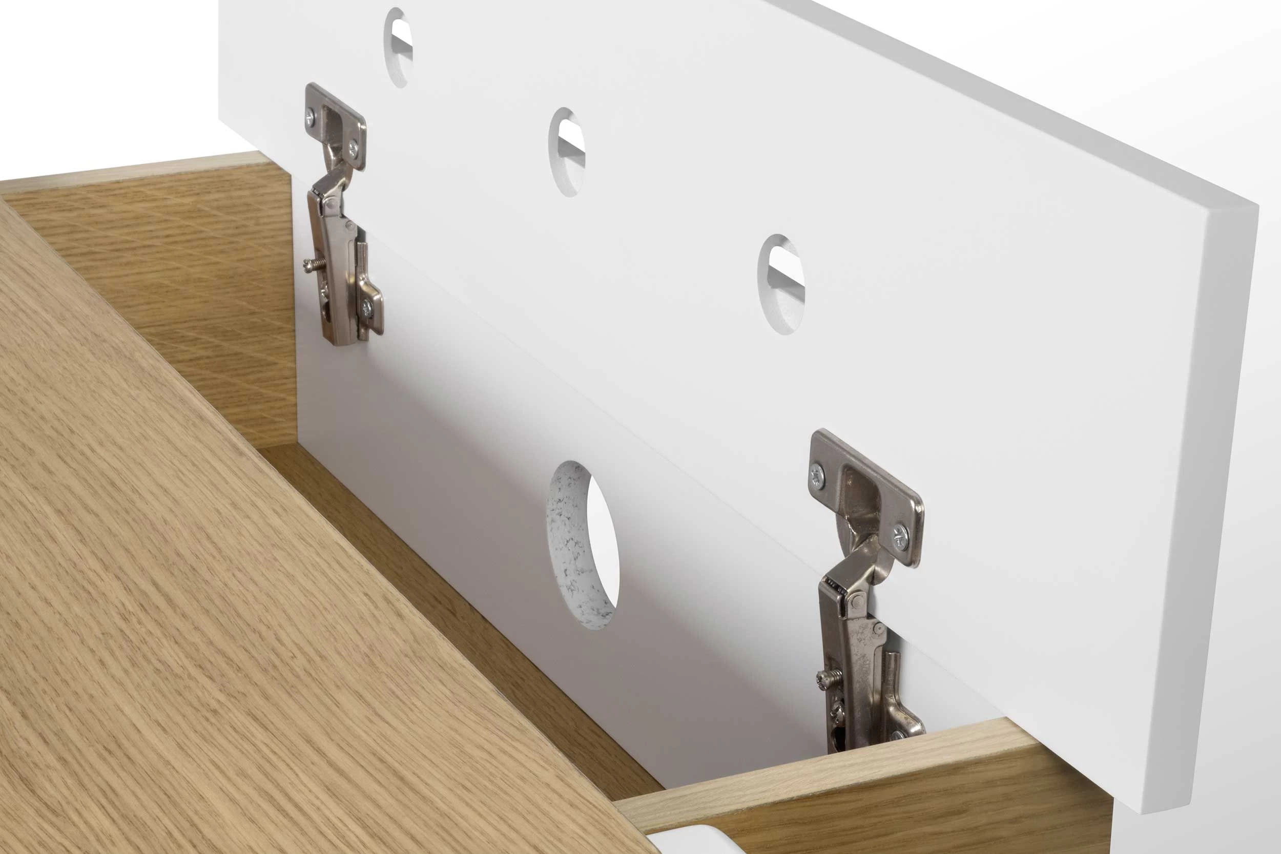 finition en placage de chêne et vernis blanc.