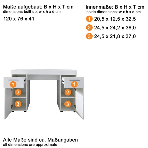 Bureau Moderne Armand Avec 2 Portes, 2 étagères, 2 Tiroirs – Blanc Brillant