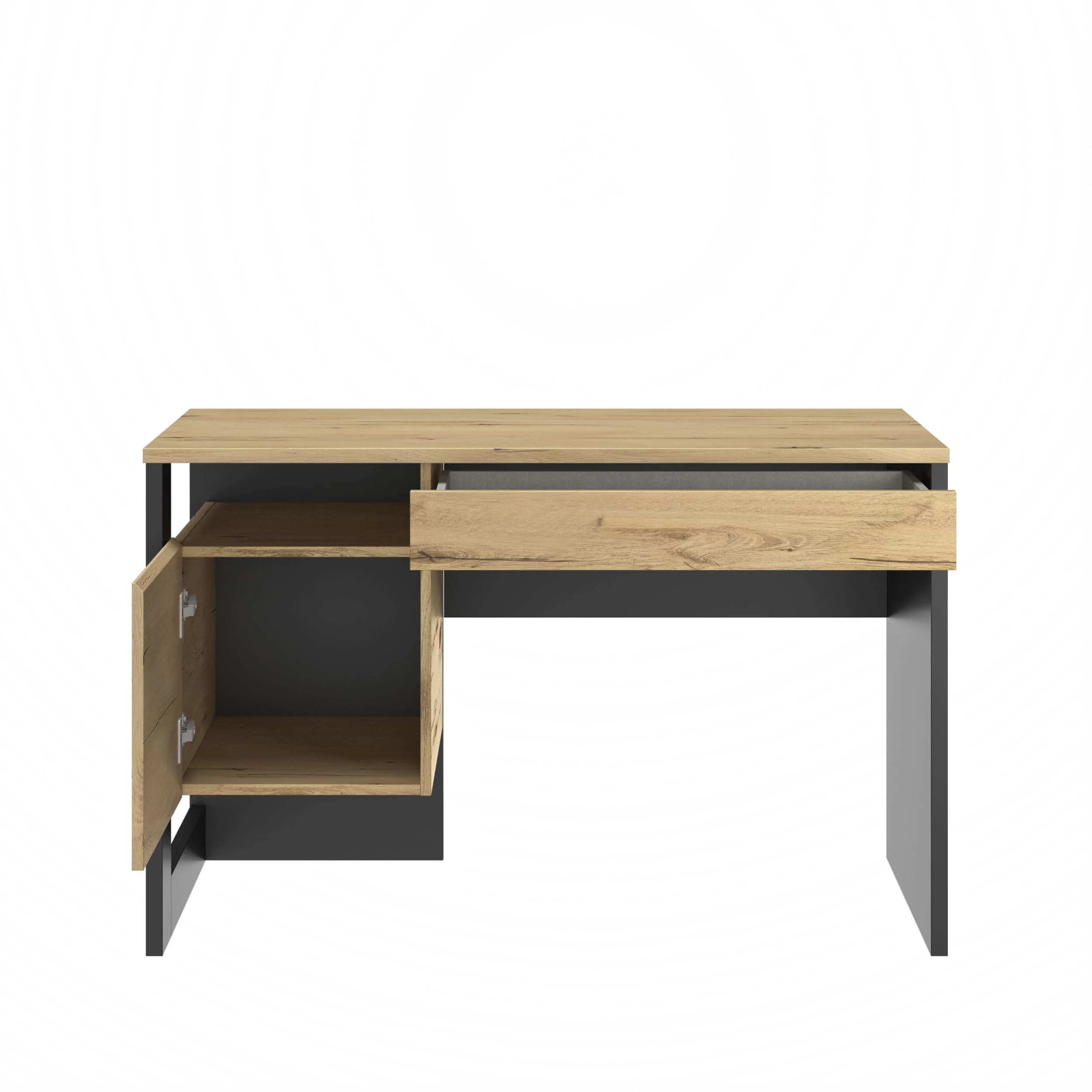 Bureau Rush 119cm, 1 Porte & 1 Tiroir – Décor De Chêne/noir