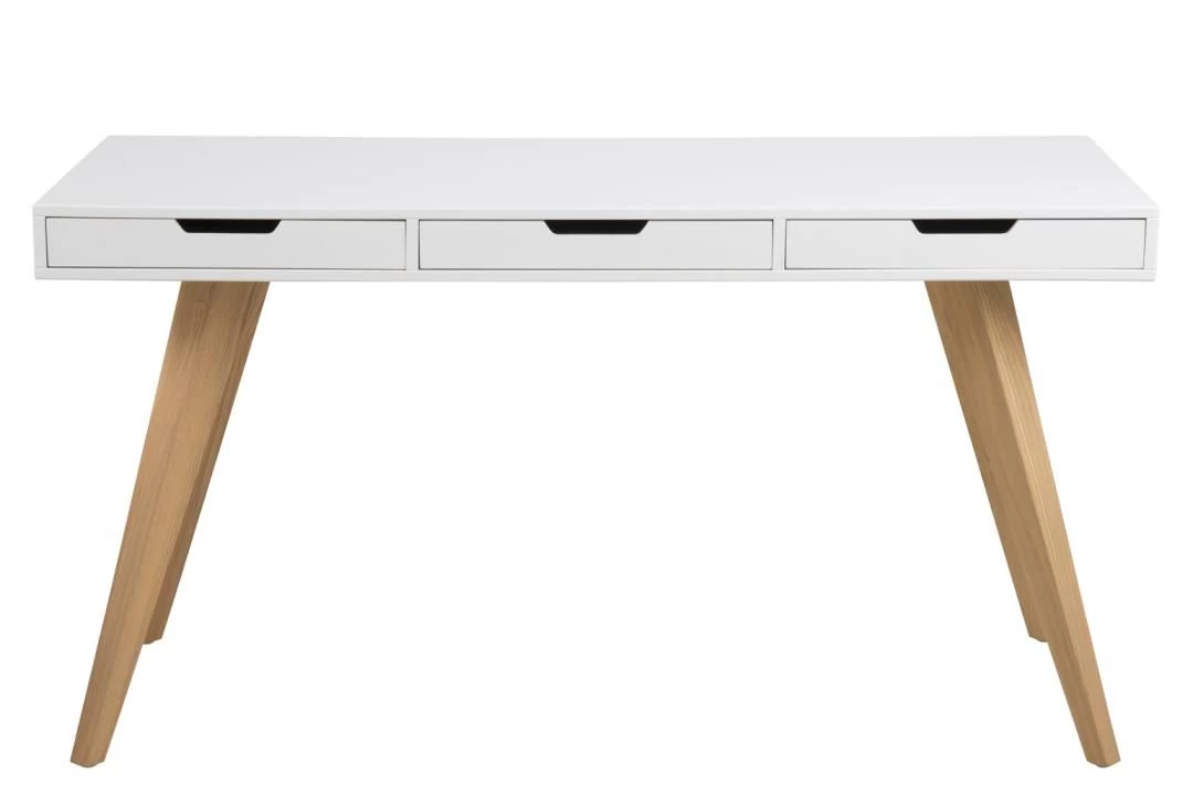 Donnez un coup de jeune à votre bureau à domicile avec ce bureau en bois Tamino. Affichant un look classique, ce bureau offre un grand espace de travail et un espace de rangement pour vos fournitures de bureau dans les tiroirs. Les poignées intégrées, le plateau laqué blanc et les pieds en frêne massif complètent le look moderne-scandinave !