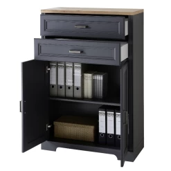 Classeur Samine 86x38x127cm Avec 2 Tiroirs & 2 Portes – Graphite/chêne