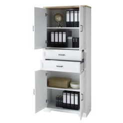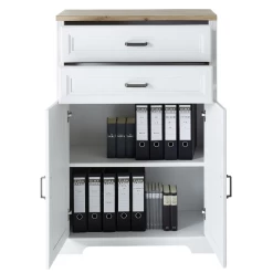 Classeur Samine 86x38x127cm Avec 2 Tiroirs & 2 Portes – Blanc/chêne