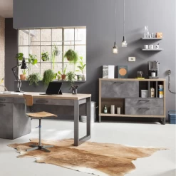 Buffet Faber 140cm Avec Porte Abattante Et Deux Tiroirs – Décor Chêne/aspect Béton