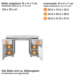 Bureau Moderne Armand Avec 2 Portes, 2 étagères, 2 Tiroirs – Blanc Brillant