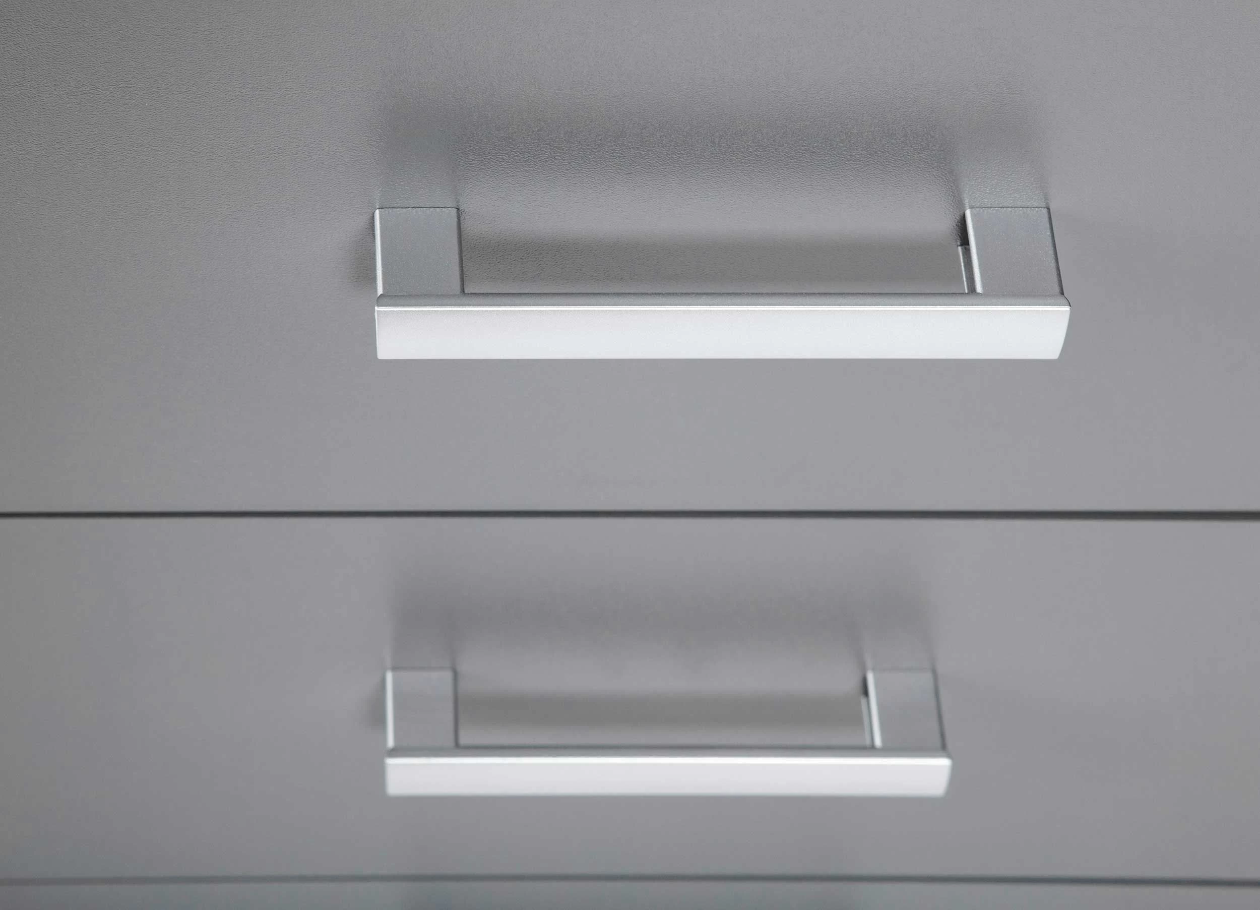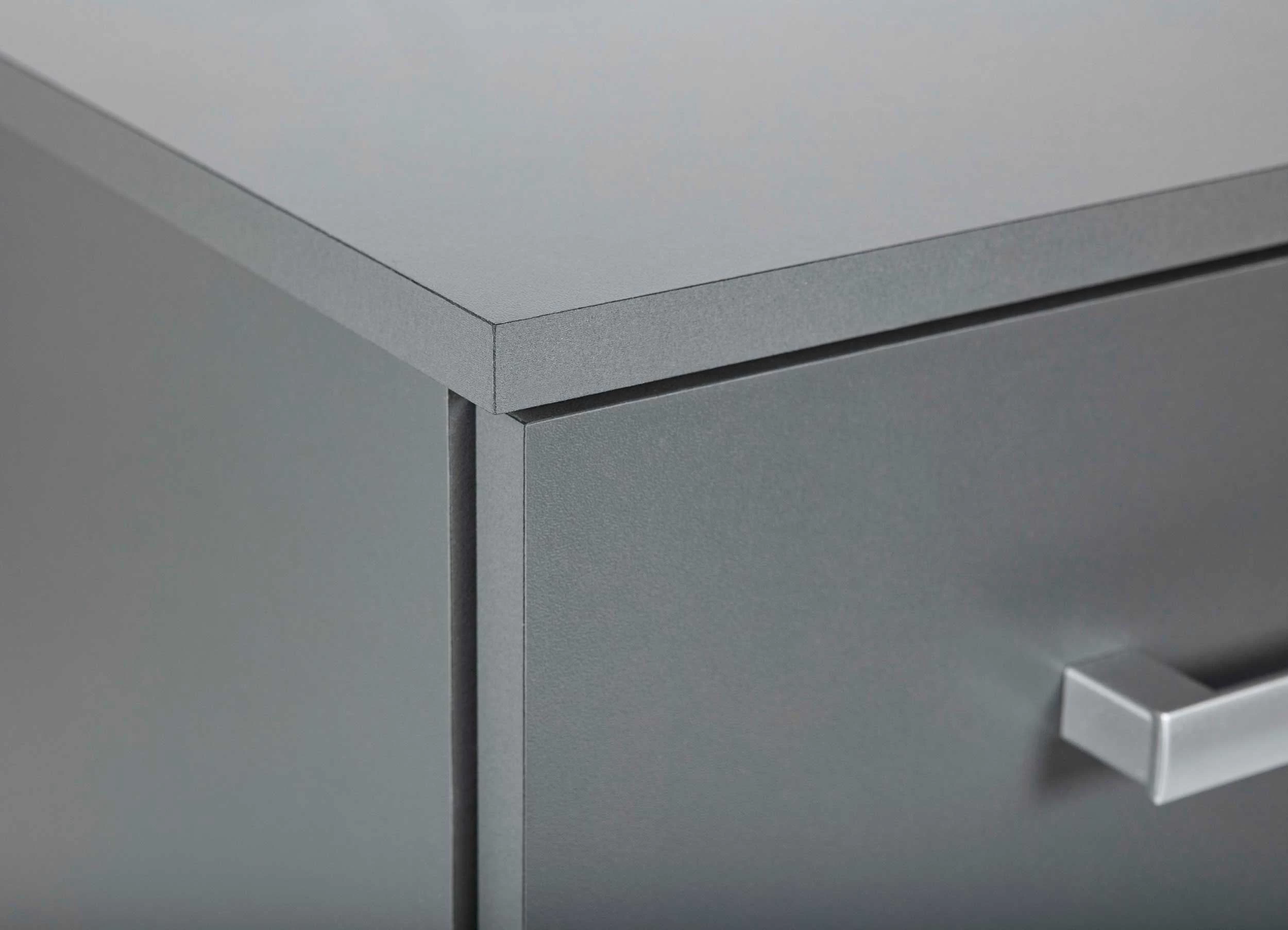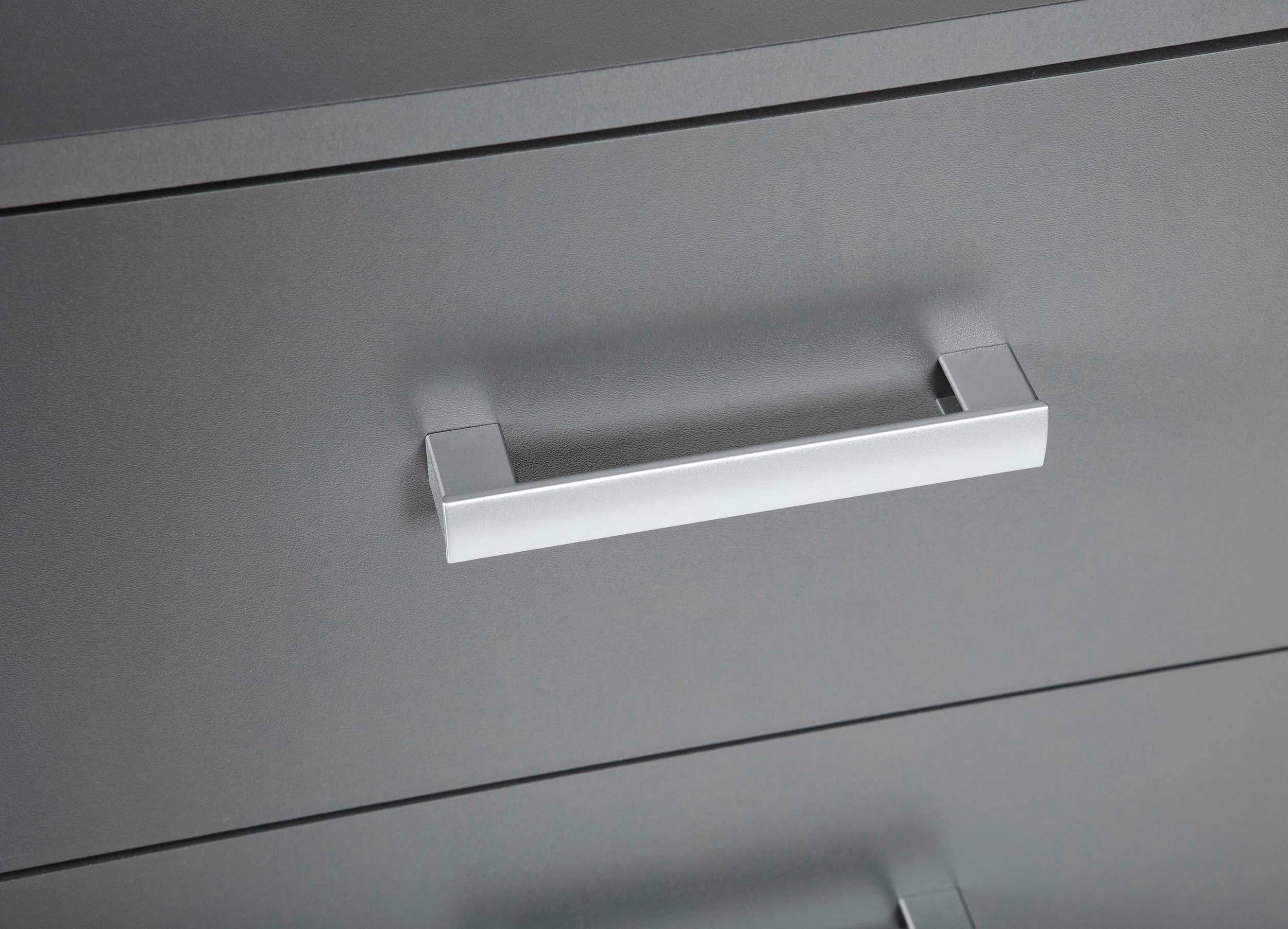 Ce caisson à tiroirs Eden est équipée de quatre tiroirs, dans lesquels vous pouvez facilement ranger des papiers ou tout autre matériel de bureau. Ce meuble est en gris graphite avec des poignées en finition gris argenté. Combinez ce meuble avec le bureau Eden et les autres meubles de la collection Eden.