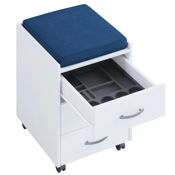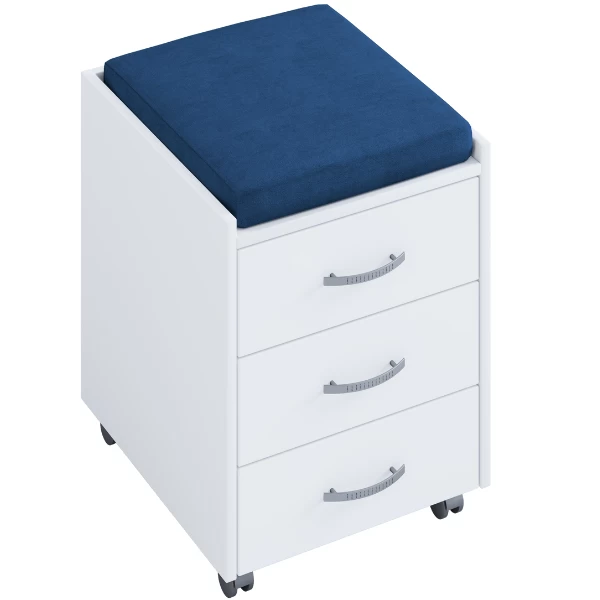 Caisson à Tiroirs Kjenta Avec Plumier Et Coussin De Siège Bleu Foncé-3 Tiroirs
