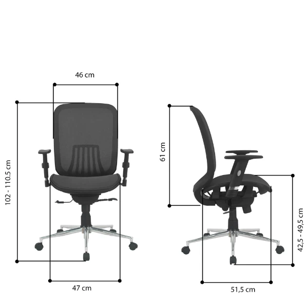 Cette chaise de bureau en noir neutre est la quintessence du confort. La hauteur d’assise est réglable de 42.5 cm à 49.5 cm et le dossier et accoudoir sont réglables. Cette chaise offre également de support au bas de votre dos. Bref, vous pouvez adapter cette chaise de bureau complètement à votre position d’assise souhiatée. Idéale pour la journée de travail typique de 8 heures.