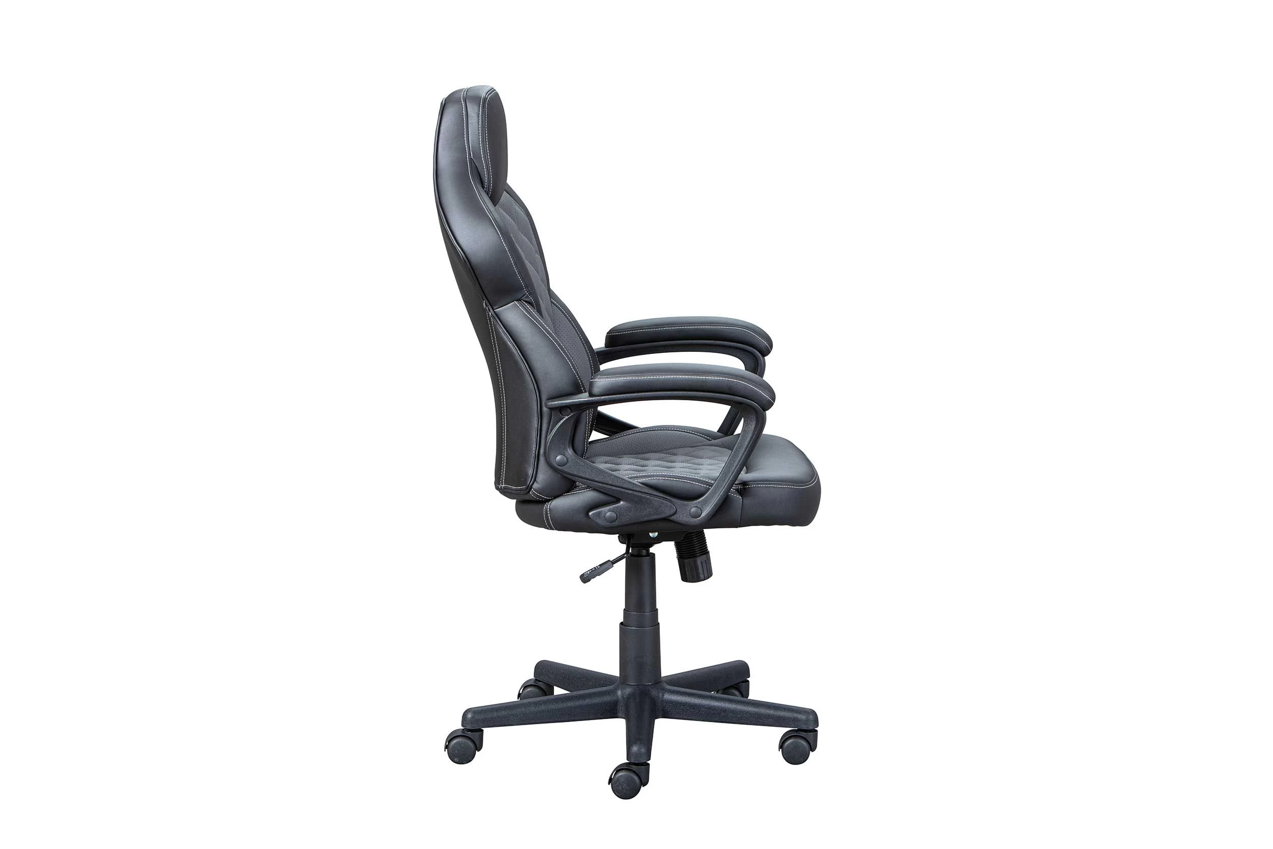 Une chaise de bureau solide et confortable est essentielle. Heureusement, la chaise de bureau Ando peut répondre à vos souhaits en matière de confort. Cette chaise est composée d’éléments préformés en plastique, recouverts de cuir artificiel et remplis de mousse. La combinaison du noir et du gris donne à la chaise une touche spéciale.