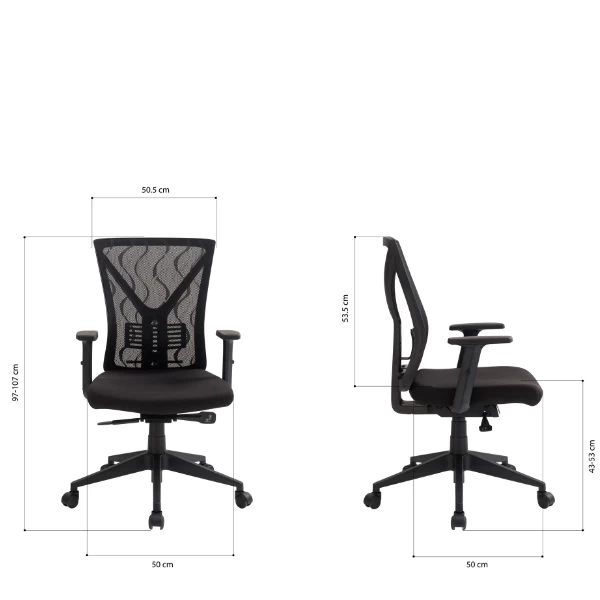 Chaise De Bureau Maréna-tissu Jacquard Mesh Noir Mat