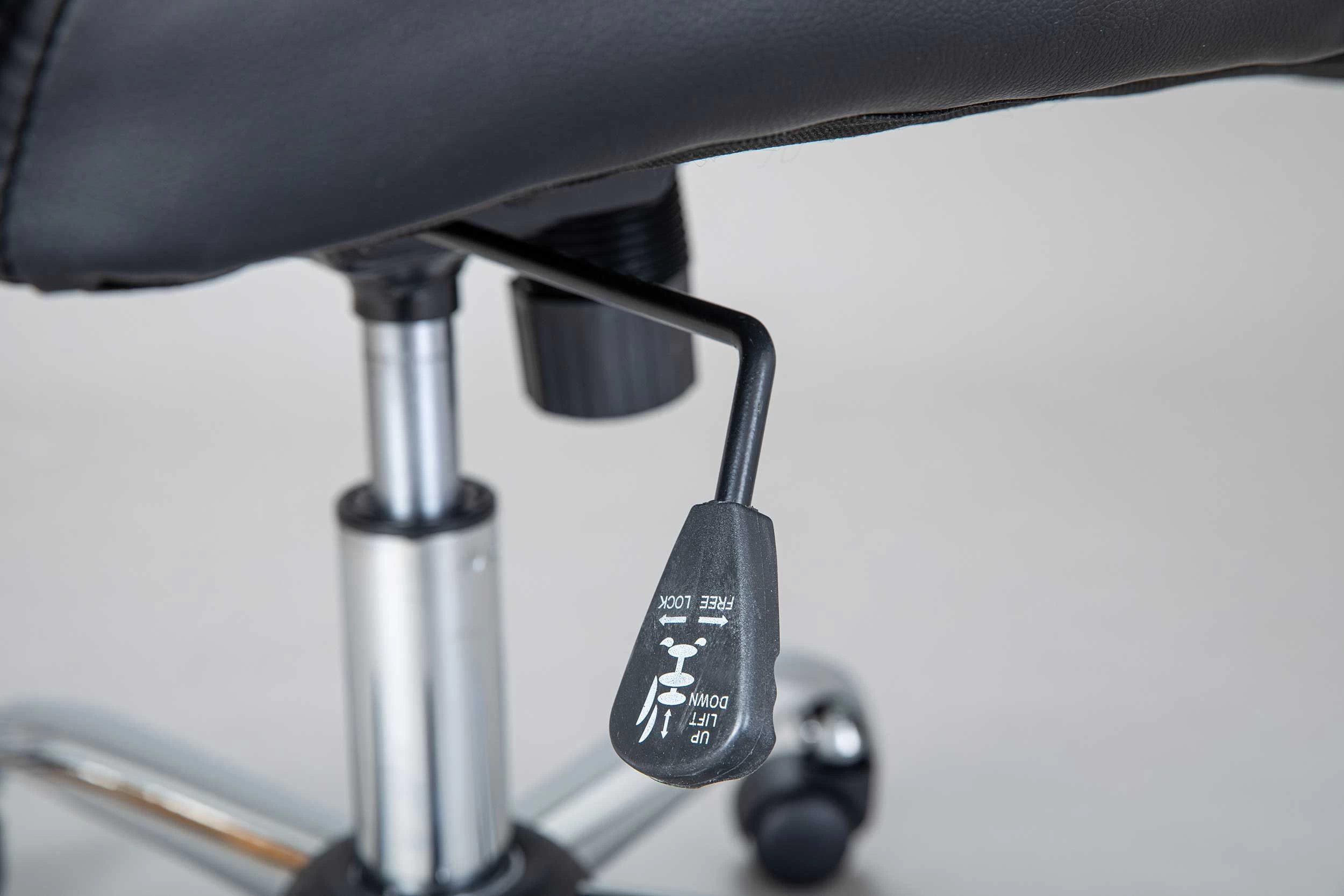 Le fauteuil de bureau Ottimo a un look très moderne et classique grâce à son revêtement en cuir artificiel noir. Vous pouvez parfaitement combiner cette chaise à la maison ou au bureau. Le fauteuil est équipé de roues et d’accoudoirs pour un confort optimal. En outre, vous pouvez facilement régler la hauteur de l’assise du fauteuil.