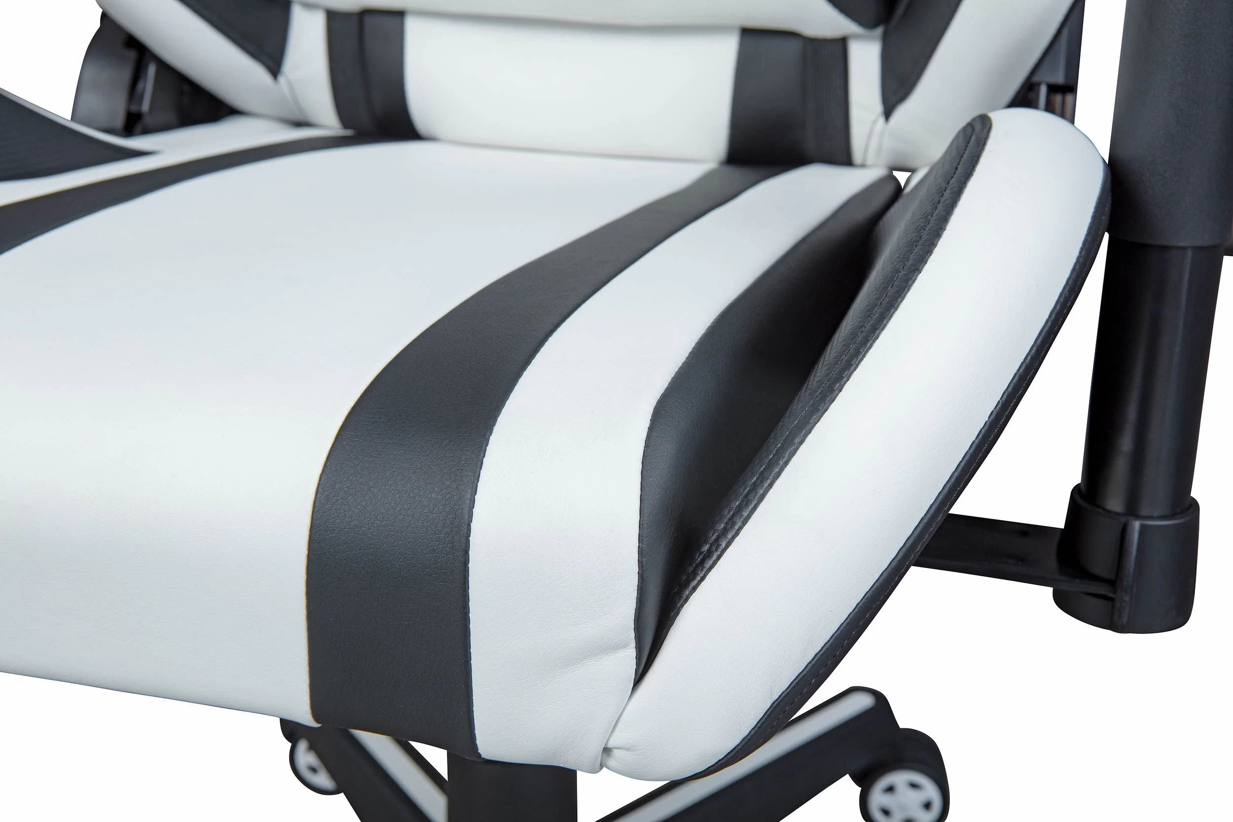 La chaise de bureau Zoro offre un confort d’assise optimal grâce à ses accoudoirs, son dossier et sa hauteur d’assise réglables. La chaise se distingue par son design unique en cuir artificiel noir et blanc. Grâce à son rembourrage en mousse de polyuréthane, cette chaise est comfortable pour le dos et l’assise. En outre, cette chaise de bureau est également équipée de coussins supplémentaire pour le dossier et l’appui-tête, qui soutient la posture assise.