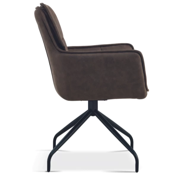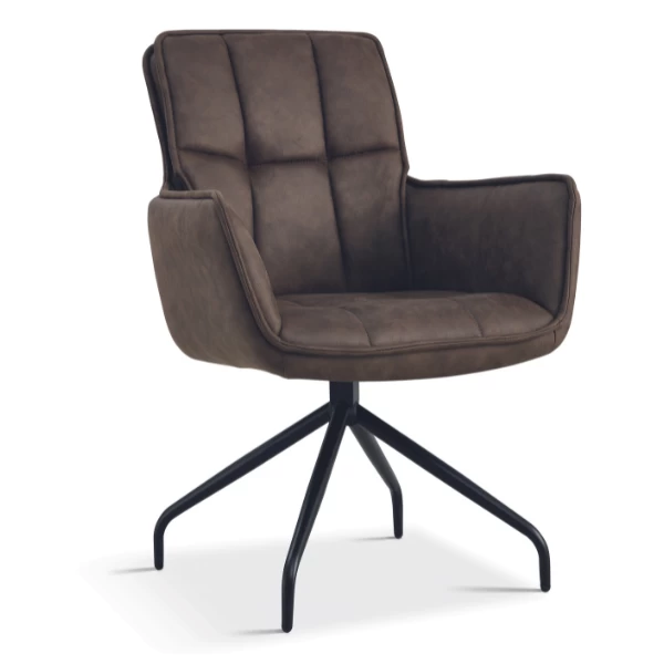 Chaise de salle à manger Ibis à l’air luxueux et confortable avec son revêtement en tissu brun-gris et son accoudoir. Agréable à s’y laisser plonger pendant le dîner après une journée de travail hectique. Aussi disponible en brun clair.
