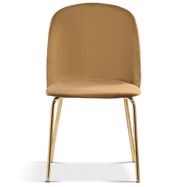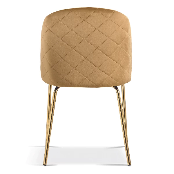 Chaise de salle à manger Lucinda a un look luxueux avec son revêtement en velours de couleur or et ses pieds de couleur or en métal. Le dossier rond avec motif de diamant à l’arrière donnent au même temps un caractère ludique au meuble. Aussi disponible en d’autres couleurs.