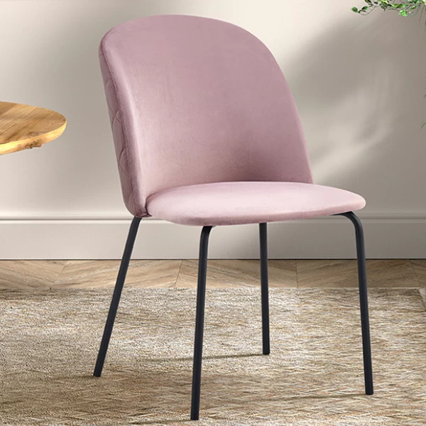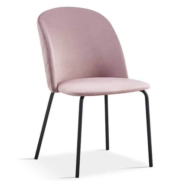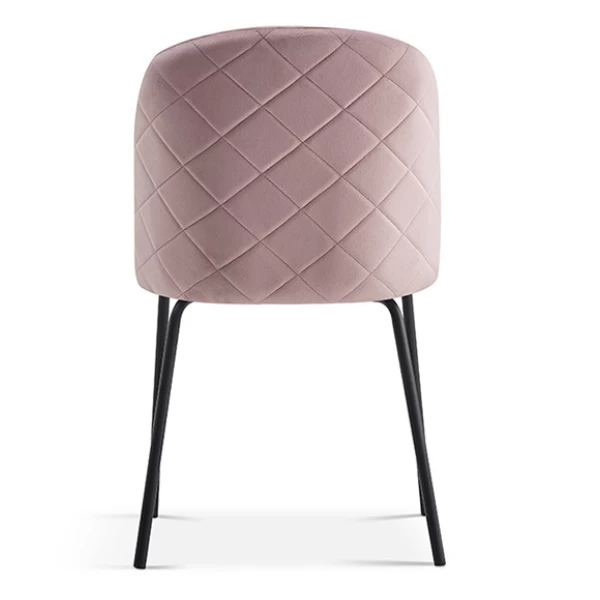 Chaise de salle à manger Lucinda a un look luxueux avec son revêtement en velours rose. Le dossier rond avec motif de diamant à l’arrière donnent au même temps un caractère ludique au meuble. Aussi disponible en d’autres couleurs.