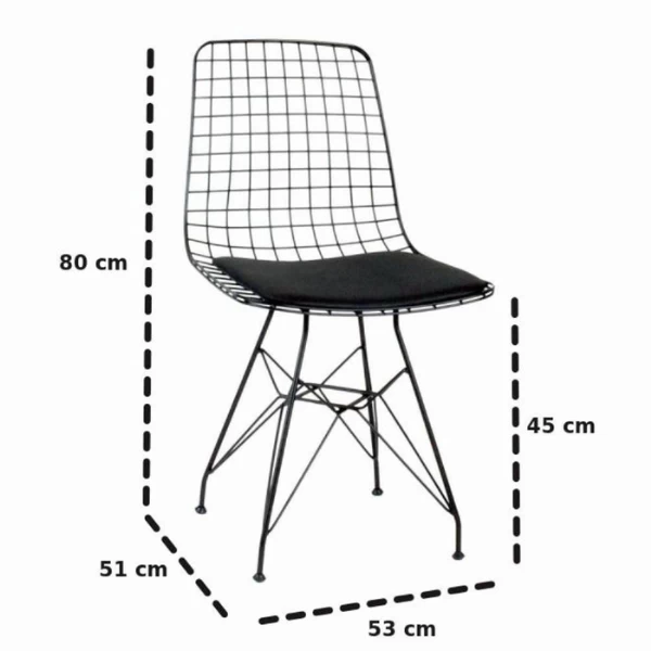 en cuir artificiel. Ce matériau de haute qualité ajoute non seulement une touche de sophistication à la chaise, mais il en facilite également l’entretien et le nettoyage. En termes de dimensions, la chaise Plass Design mesure 53 cm de largeur, 80 cm de hauteur et 51 cm de profondeur. Cette taille compacte la rend idéale pour divers espaces, qu’il s’agisse d’une salle à manger, d’un bureau ou même d’un coin lecture confortable. La hauteur d’assise de 45 cm offre un confort optimal aux utilisateurs de toutes tailles.L’un des principaux avantages de la chaise Plass Design est sa facilité de montage. Cette chaise est livrée pré-assemblée, ce qui évite les instructions et les outils compliqués. Il suffit de la déballer et de la placer à l’endroit désiré, et vous êtes prêt à profiter de sa beauté élégante et de son design confortable.La chaise Plass Design est disponible dans une couleur noire classique, ajoutant une touche de sophistication à n’importe quel intérieur. Qu’il s’agisse d’un décor moderne ou traditionnel, cette chaise s’intègre sans effort et complète différents styles. Son design polyvalent en fait un excellent choix pour les environnements résidentiels et commerciaux.Investir dans la chaise design Plass, c’est investir dans la qualité et le style. Sa construction 100 % métallique garantit la durabilité, tandis que le revêtement en cuir artificiel 100