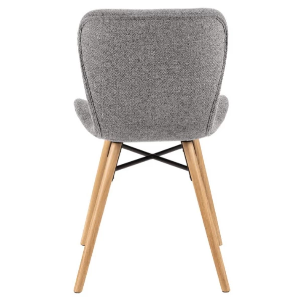 Cette chaise confortable Tilda est recouverte de tissu de couleur grise. Les pieds obliques en chêne massif sont traités à l’huile et reliés par une croix noire en métal. La chaise s’intègre parfaitement dans un intérieur en style scandinave.