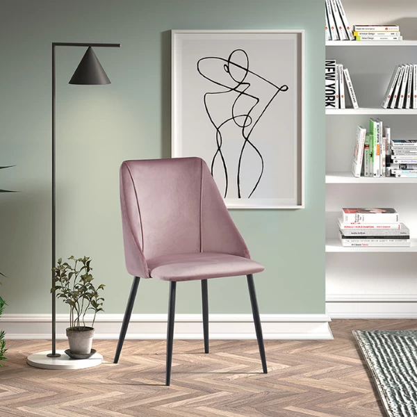 Cette chaise Maria est bien plus qu’une chaise. Ce modèle intemporel et de caractère s’impose dans toutes les pièces de votre intérieur moderne et ne doit pas être limité à la table à manger. Pensez par exemple à un agréable coin salon ou lecture. Avec sa large gamme de couleurs amusantes, la chaise apporte une touche de gaieté à votre intérieur. Cette chaise est fabriqué en tissu velours rose et les pieds en métal noir.