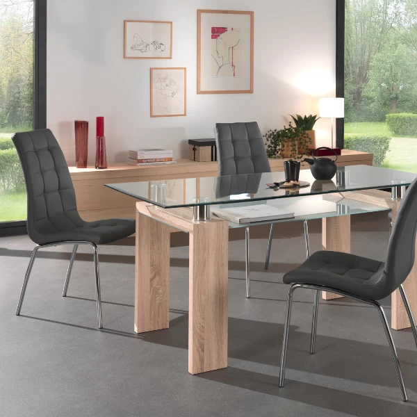 La chaise Merlino a un design chic et contemporain pour chaque salle à manger. La structure de la chaise est en eco-cuir et acier et le garnissage est en mousse.