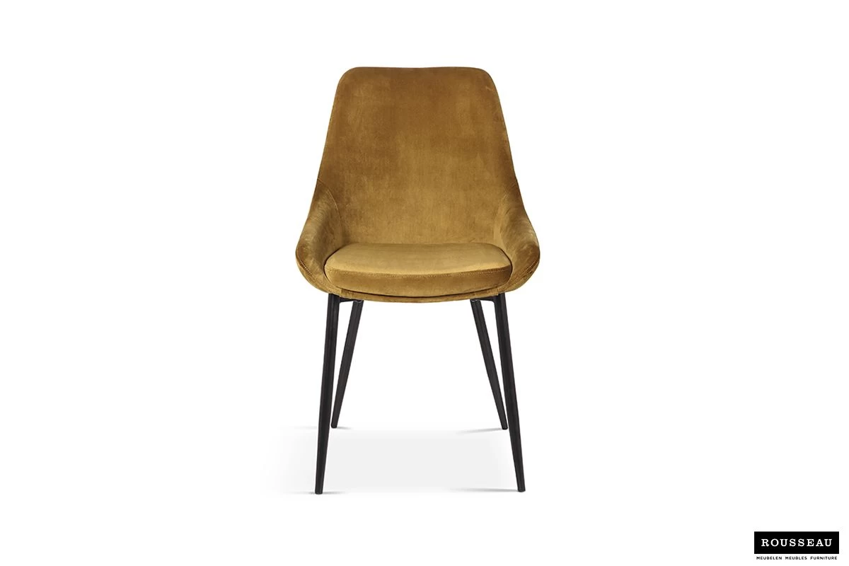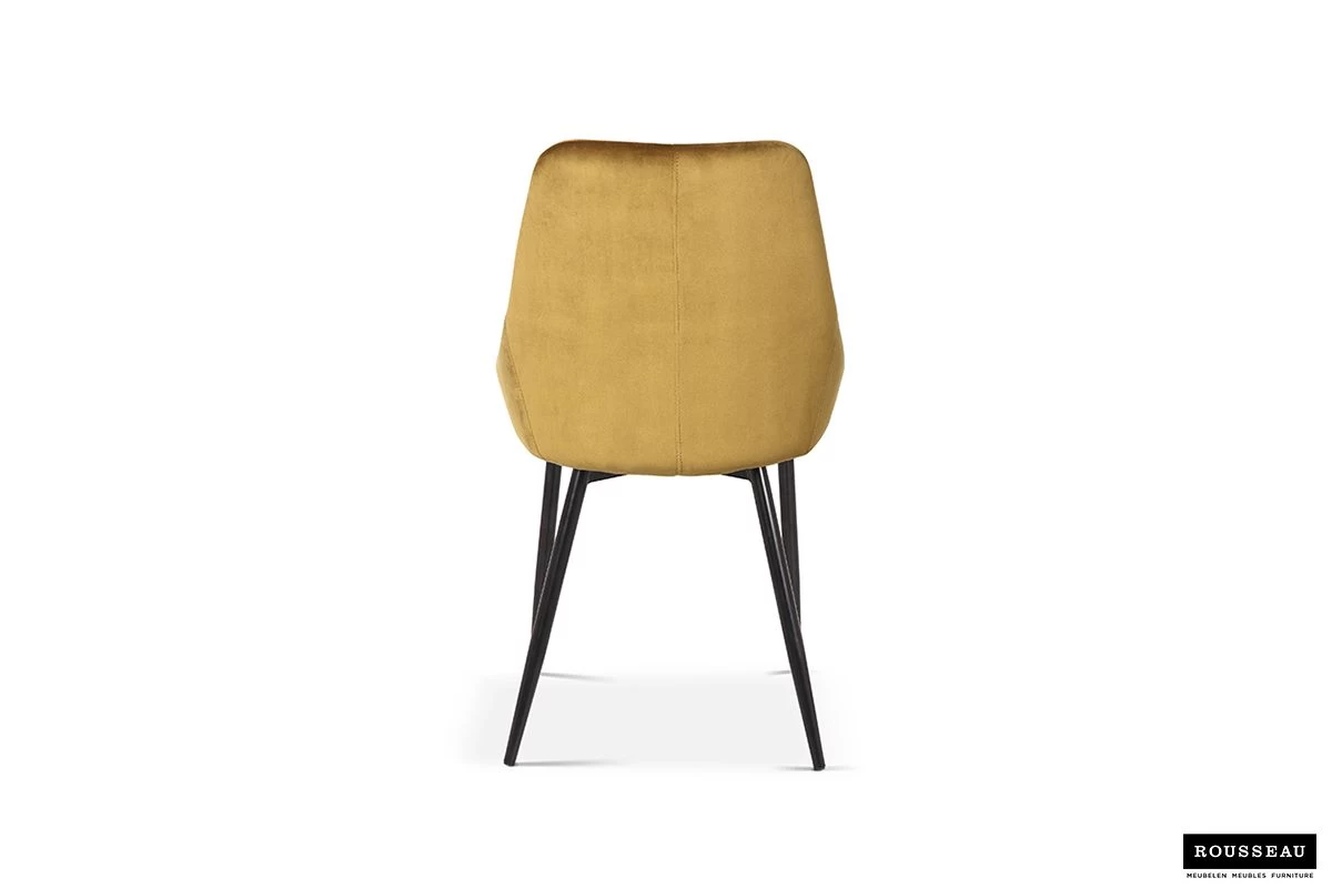 Cette chaise Mirano apporte une touche de luxe à votre salle à manger. La chaise est recouverte de velours de couleur or et est très confortable. Les pieds noirs sont fait de métal. Egalement disponible dans d’autres couleurs.