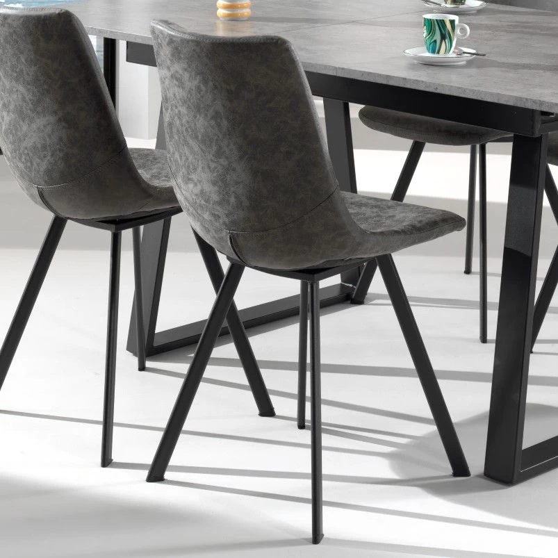 Vous désirez des chaises coquilles pour dans votre salle à manger ou votre cuisine ? Que pensez-vous de ce modèle ? La chaise Norway est très confortable et s”intègre dans votre intérieur en style industriel. La chaise a des pieds en métal et un revêtement gris en similicuir. Disponible en plusieurs couleurs.