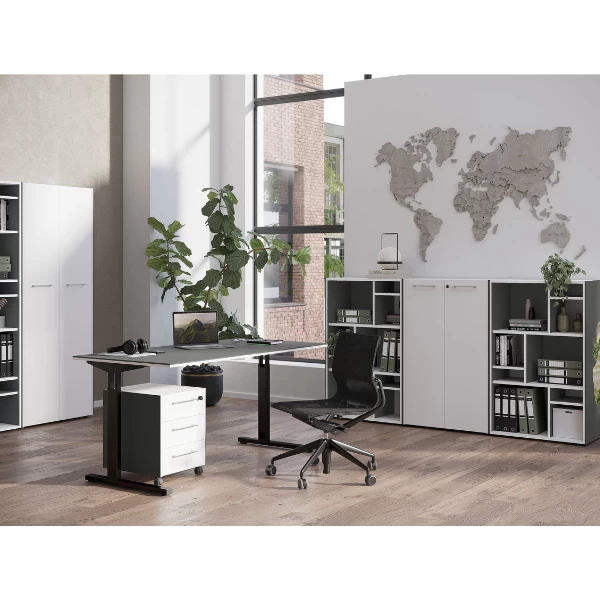 Classeur Bas Jetta Avec 2 étagères – Anthracite/blanc
