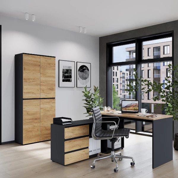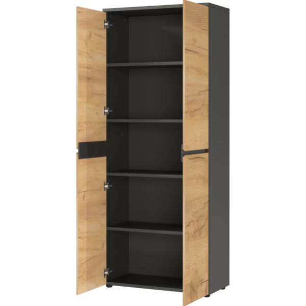 Classeur Miguel Avec 2 Portes Et 4 étagères – Anthracite/ochre