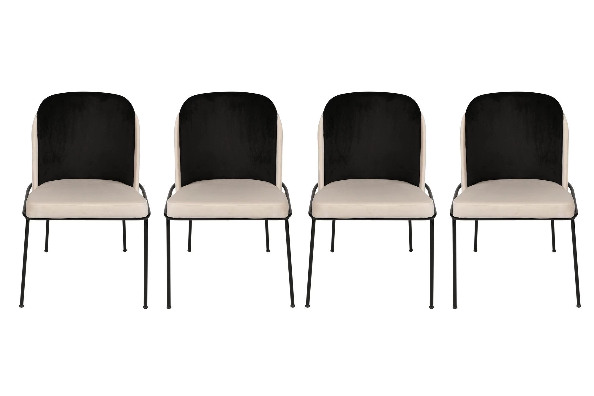 Le dossier de l’ensemble de chaises Vella est fabriqué en contreplaqué et recouvert de tissu de velours, ce qui garantit une assise confortable même en cas d’utilisation prolongée. La conception ergonomique du dossier favorise une bonne posture, réduisant le risque de tension ou d’inconfort.