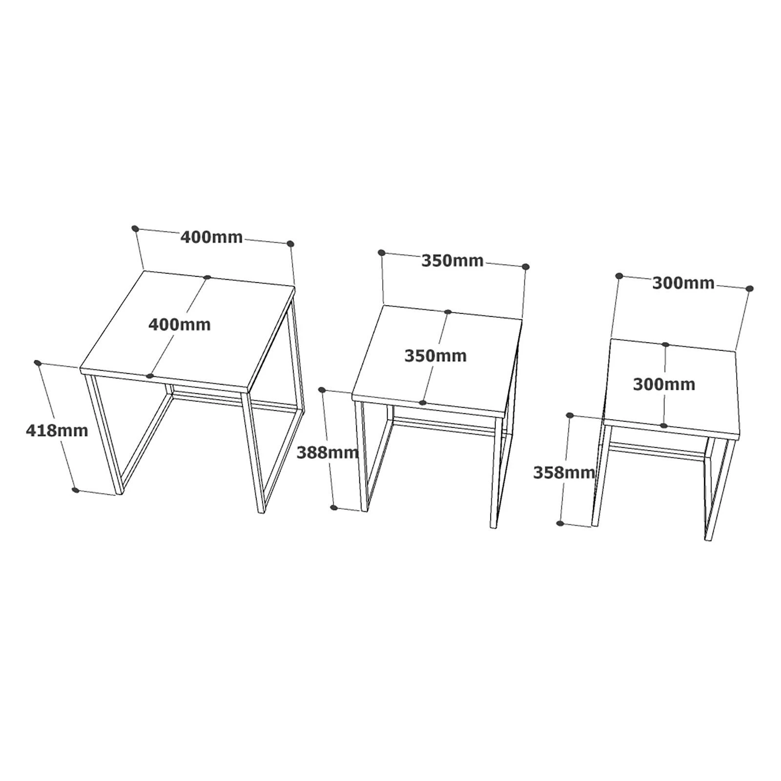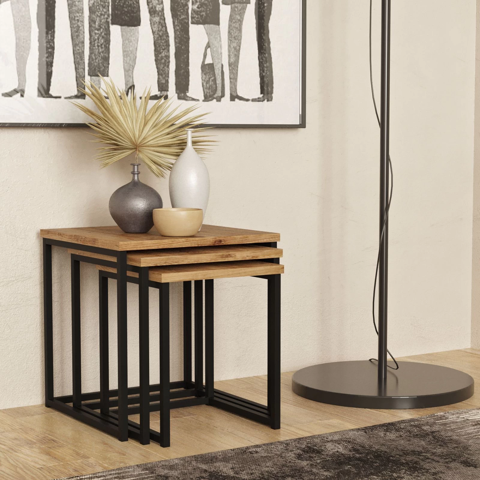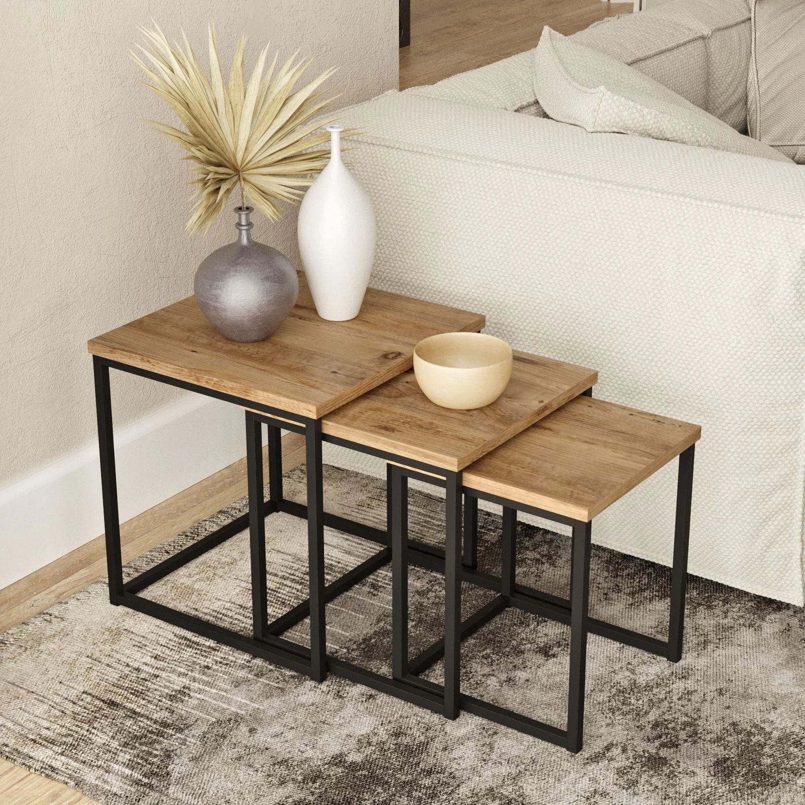 Ensemble De Tables Gigognes élégantes | 100% Mélaminé | Pin Atlantique | 3 Pièces
