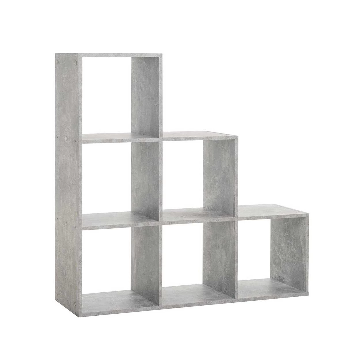 Cette attrayante étagère de rangement Udine en aggloméré à décor de béton se caractérise par son design ludique et ses vastes possibilités. Dans les 6 compartiments ouverts, vous pouvez utiliser des décorations, des accessoires et des paniers de rangement pour habiller la pièce.