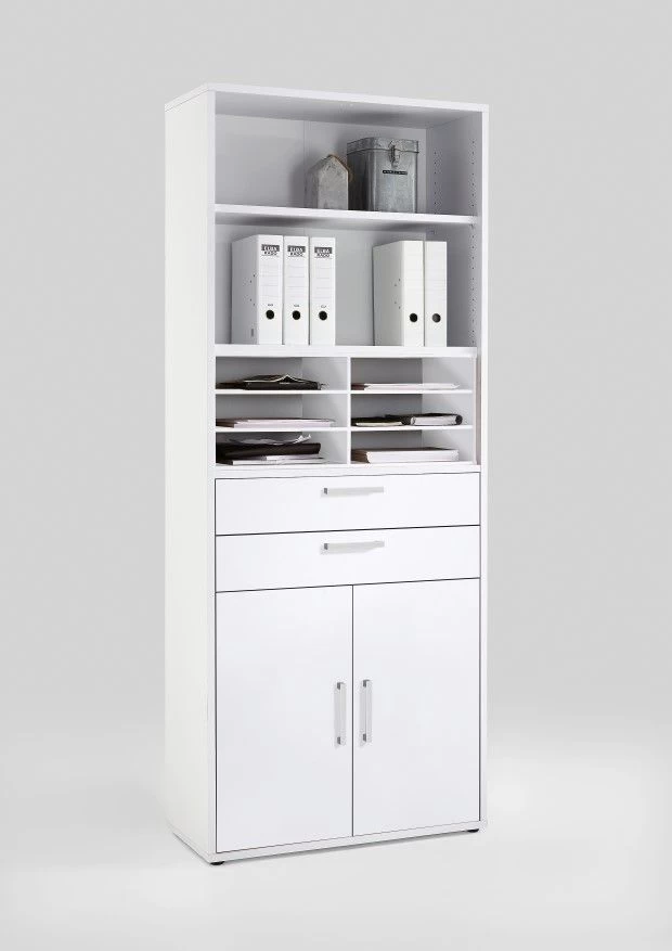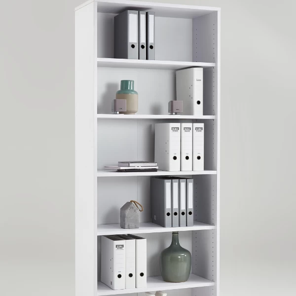 La bibliothèque Gabi comprend 6 larges niches dans lesquelles vous pouvez ranger des livres, des classeurs et d’autres articles de bureau. Et n’hésitez pas à y mettre quelques objets déco afin d’égayer votre coin travail. La bibliothèque est réalisée en panneaux de particules à finition blanc brillant. Découvrez tous les meubles de la collection Gabi sur notre site web !