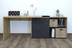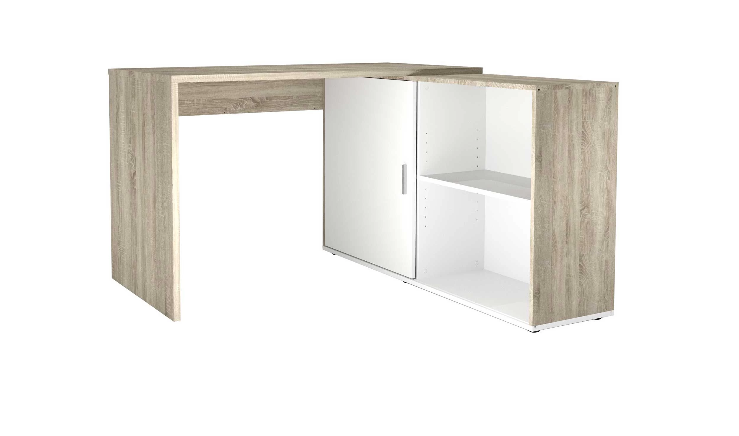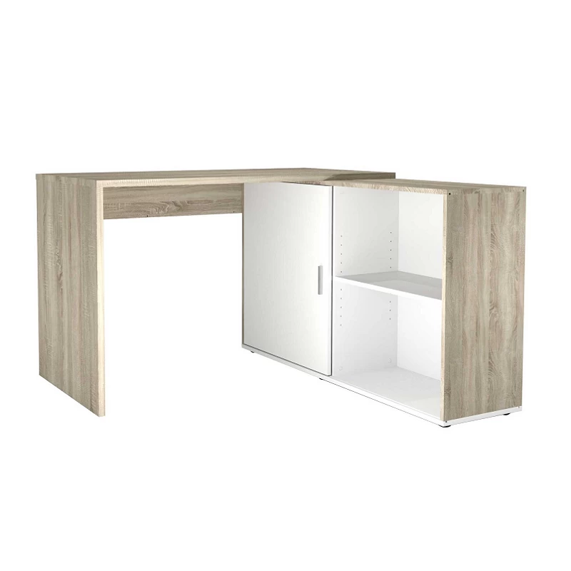 Le bureau Vaiana est réalisé en panneaux de particules avec un décor en chêne et quelques accents blancs.