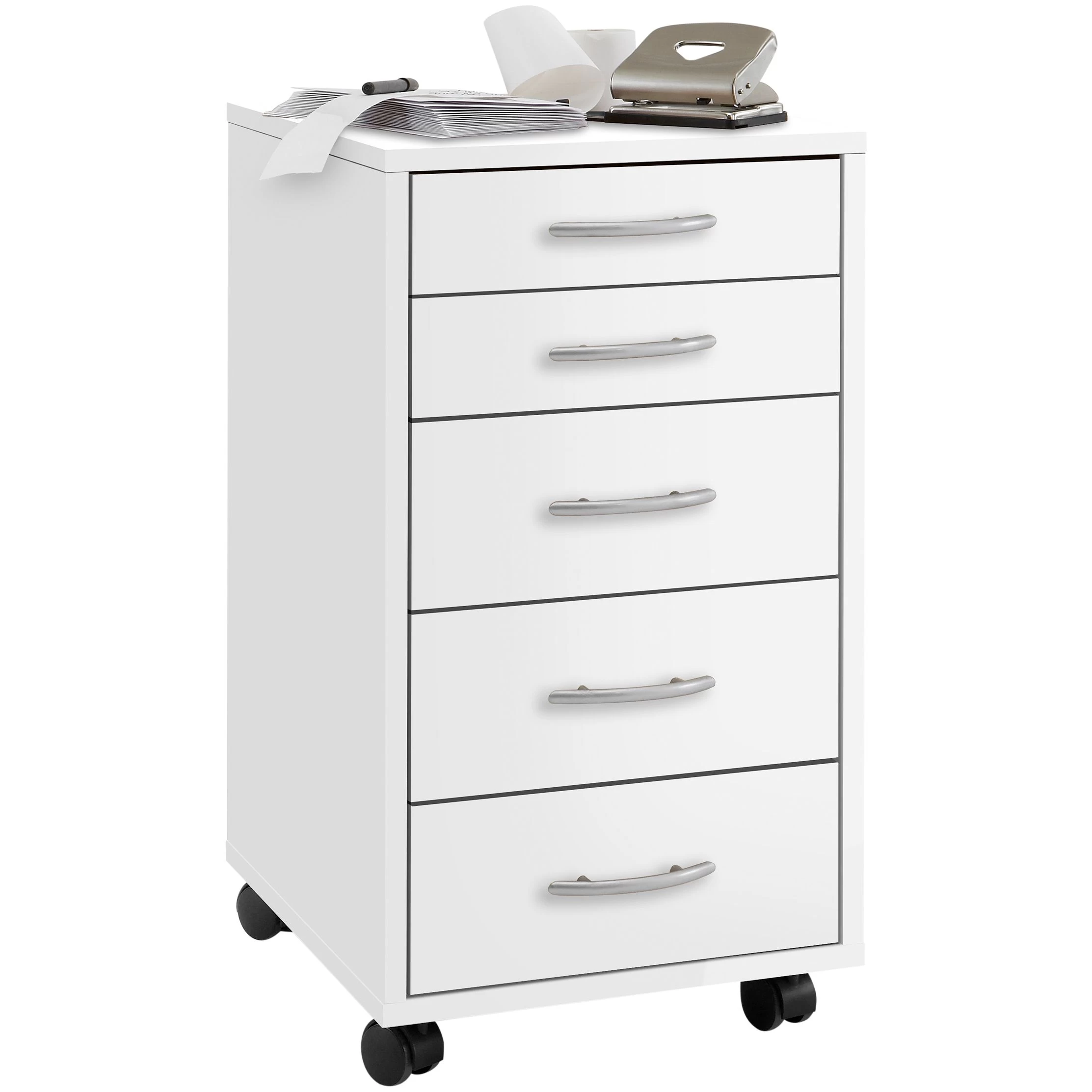 Mettez de l’ordre dans votre bureau grâce à un caisson à tiroirs. Vous pouvez ranger beaucoup de papiers dans les cinq tiroirs.