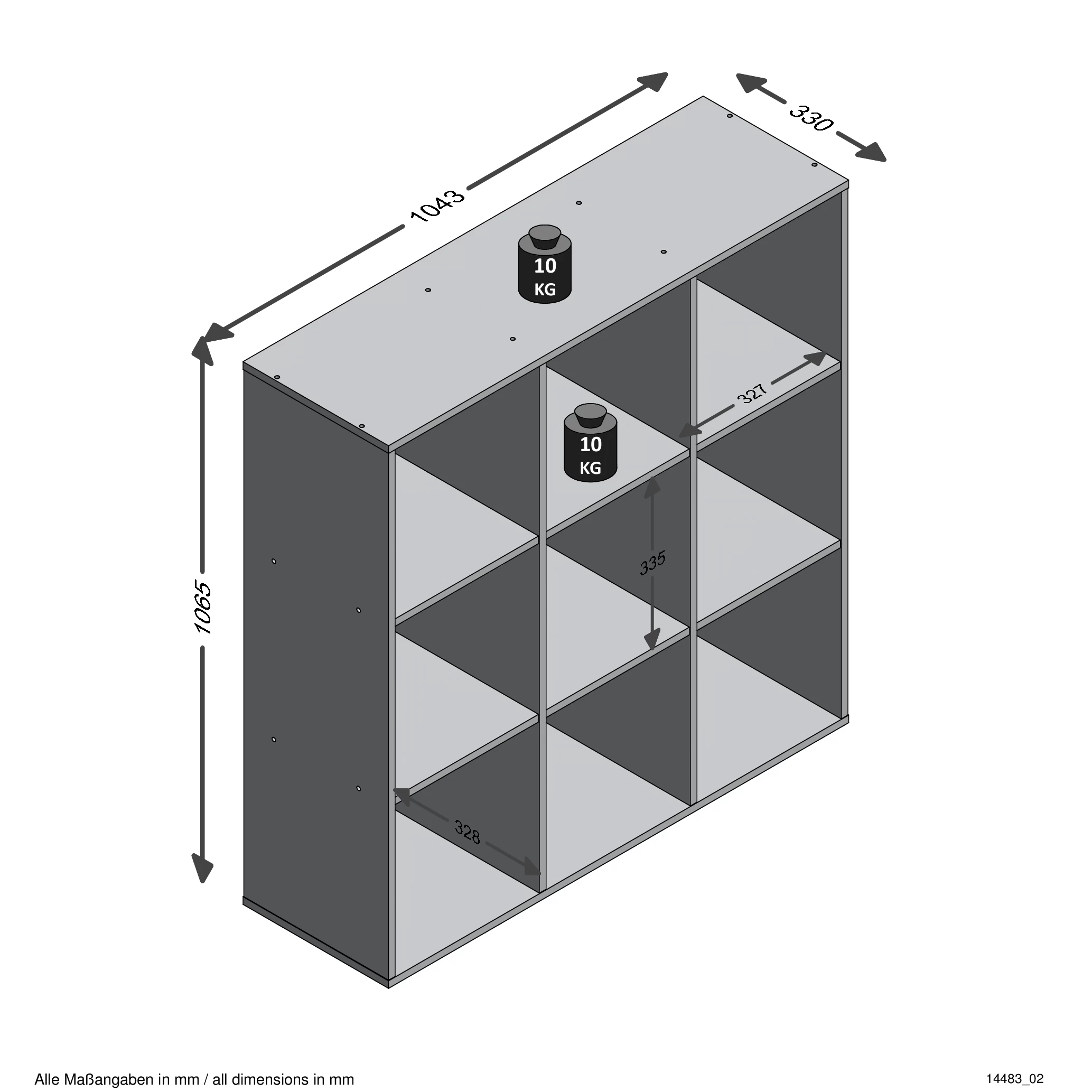 L’étagère Méga présente la solution par excellence pour votre manque d’espace de rangement. Cette armoire à 9 niches vous permet d’exposer vos plus belles statuettes, vases et autres objets. En ajoutant quelques paniers de couleurs vives, vous créez un effet ludique. Comme il n’y a pas de fond, vous pouvez également utiliser cette étagère comme cloison. Joli et pratique !